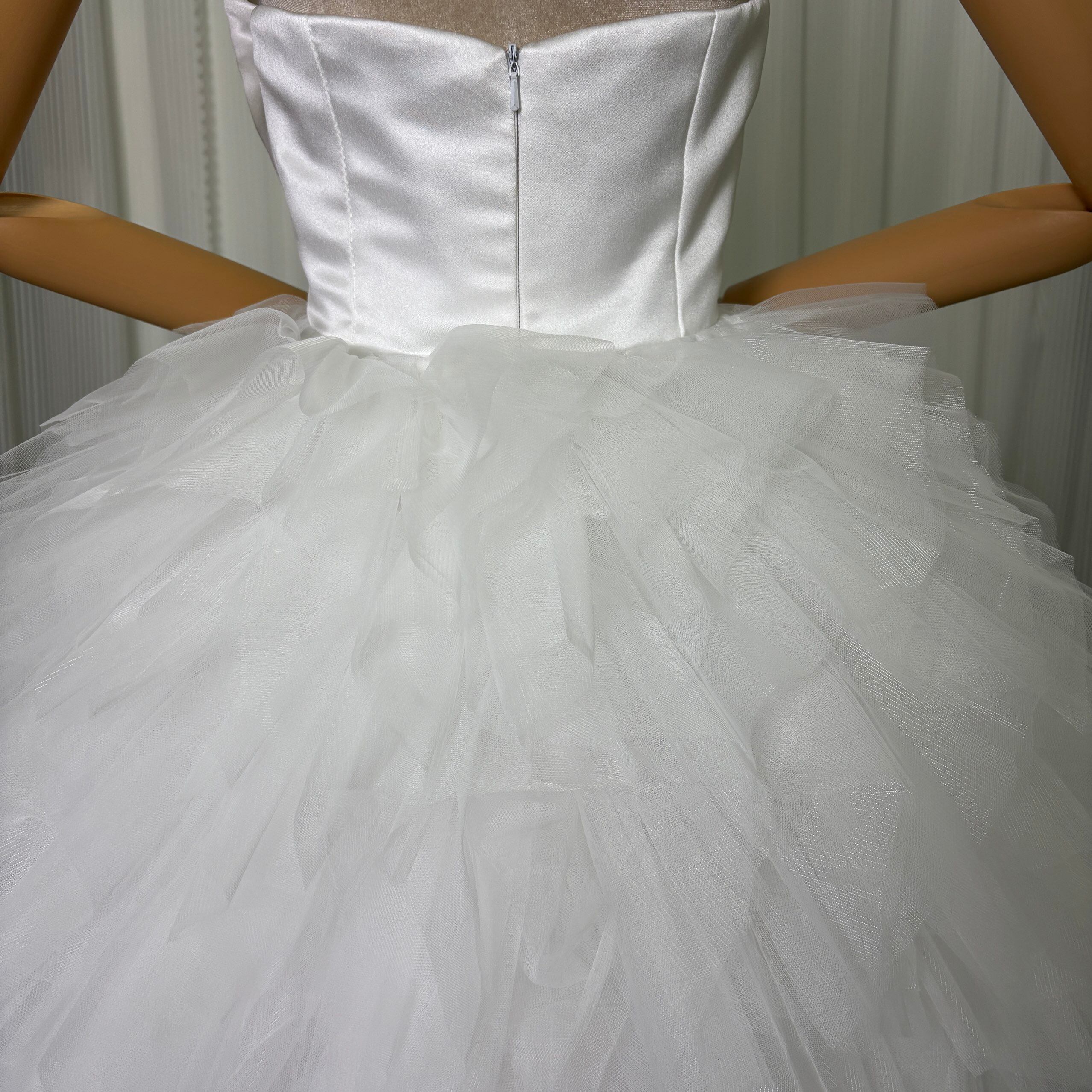 ウエディングドレス オフホワイト Vネックドレス アシンメトリー風 ミニドレス 可愛い 結婚式