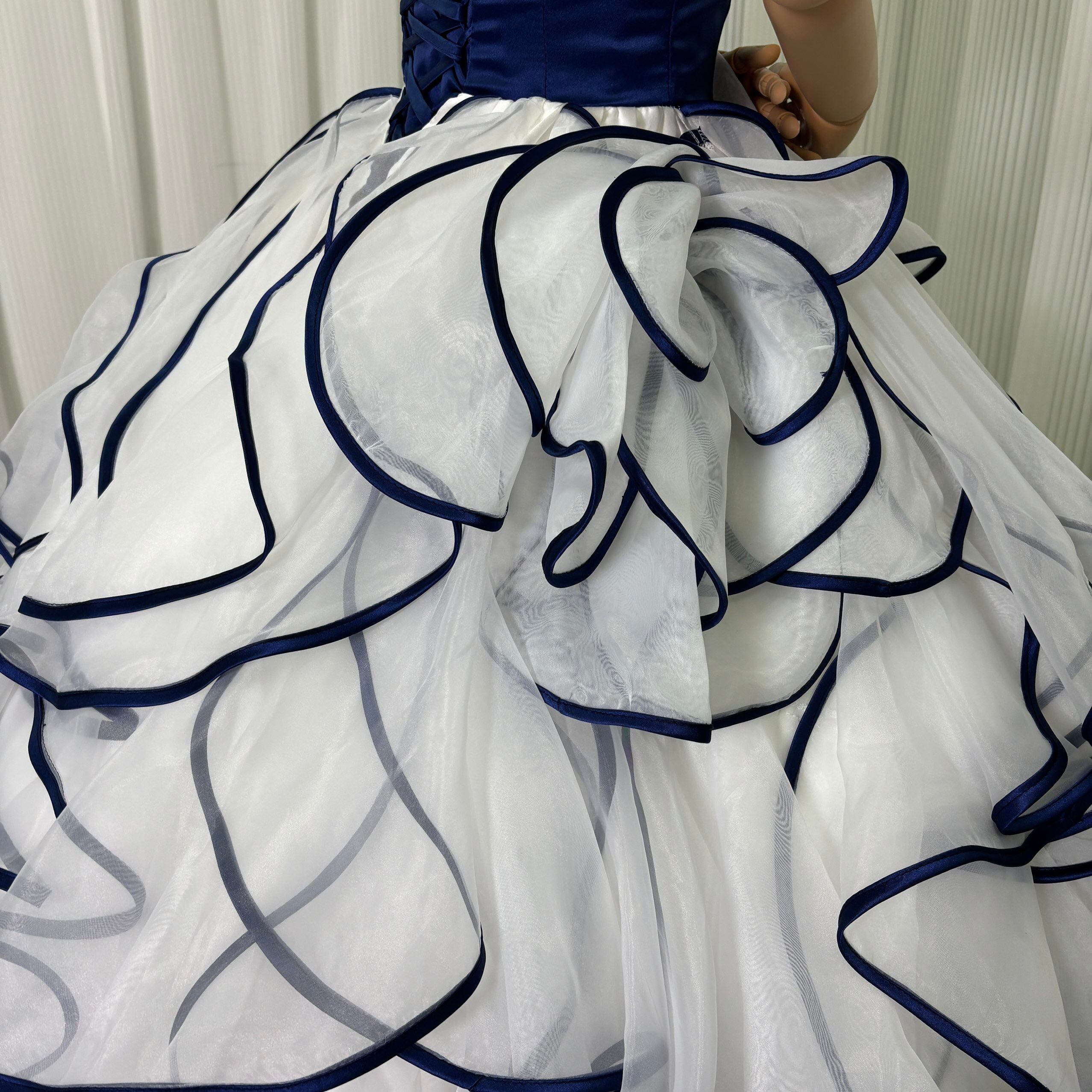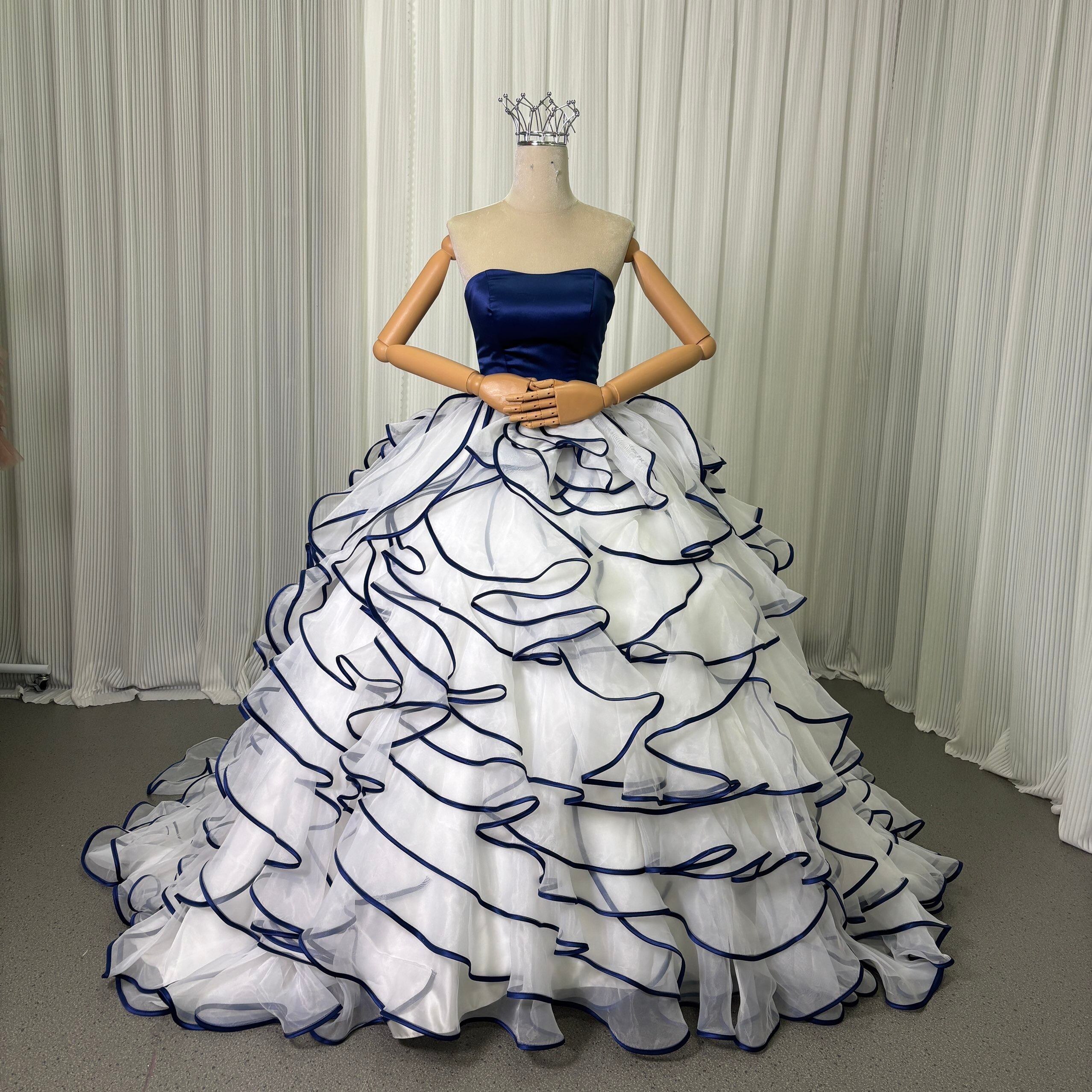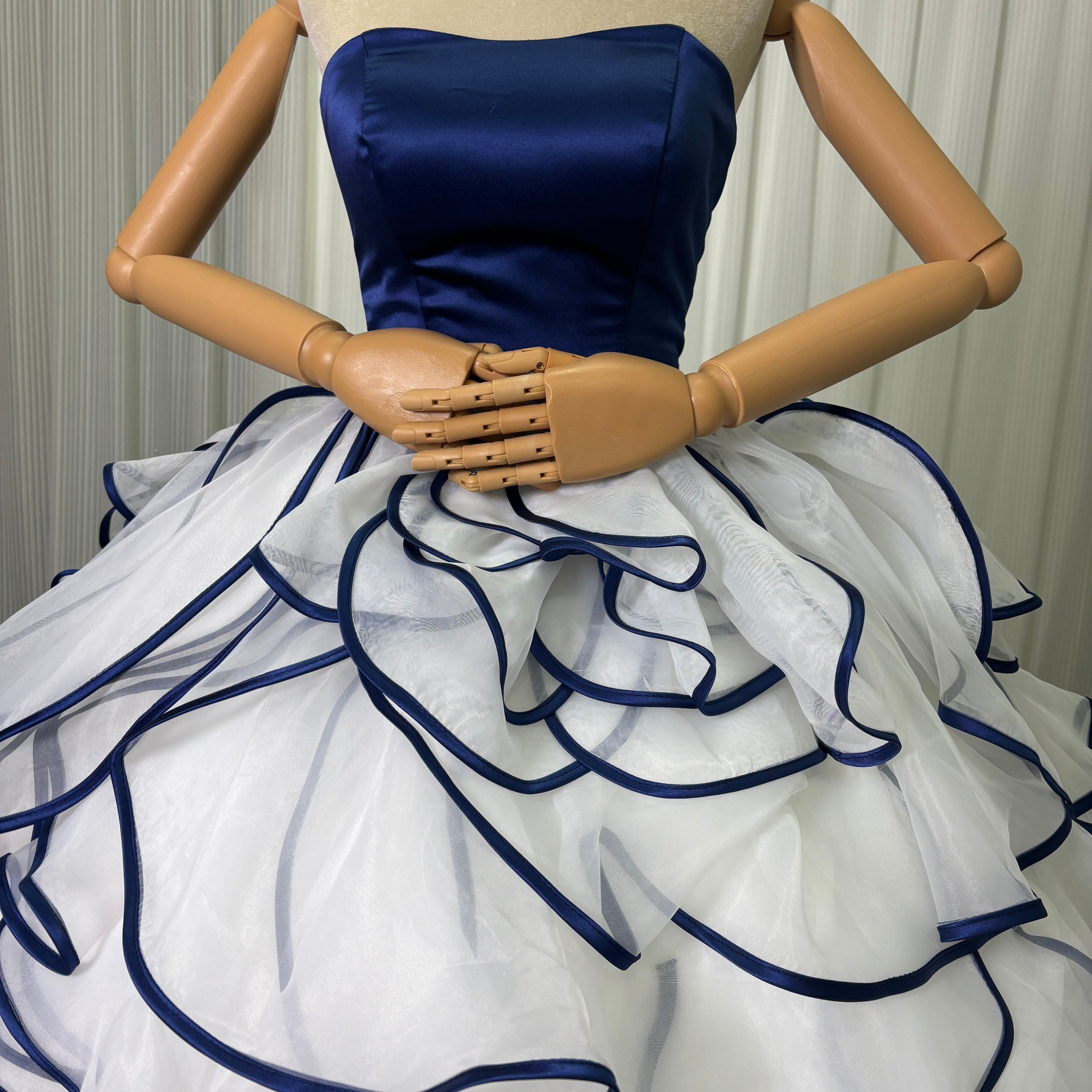 カラードレス ネイビー ビスチェドレス+ボレロ リボン 上質オーガンジー アシンメトリー風 編み上げ ブライダル