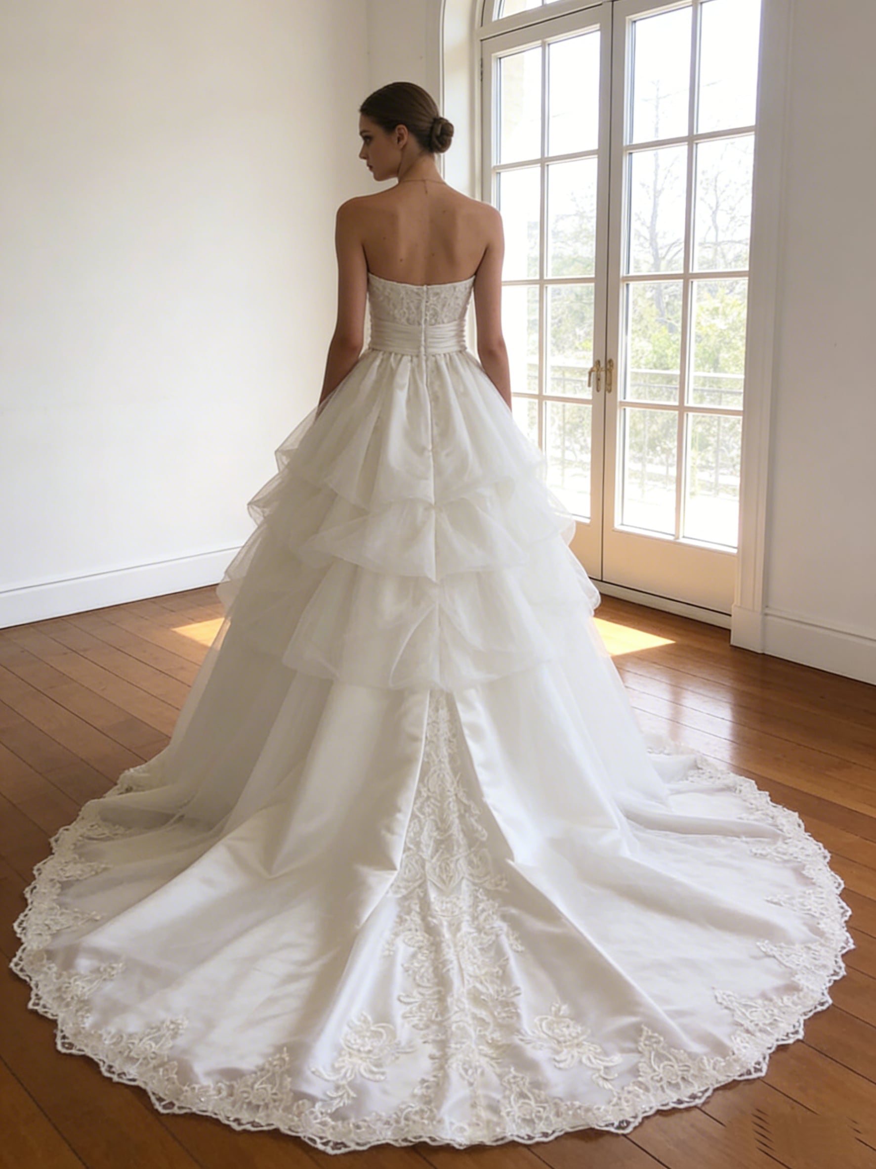 ウエディングドレス オフホワイト スリット 繊細なレース トレーン ビスチェドレス 結婚式