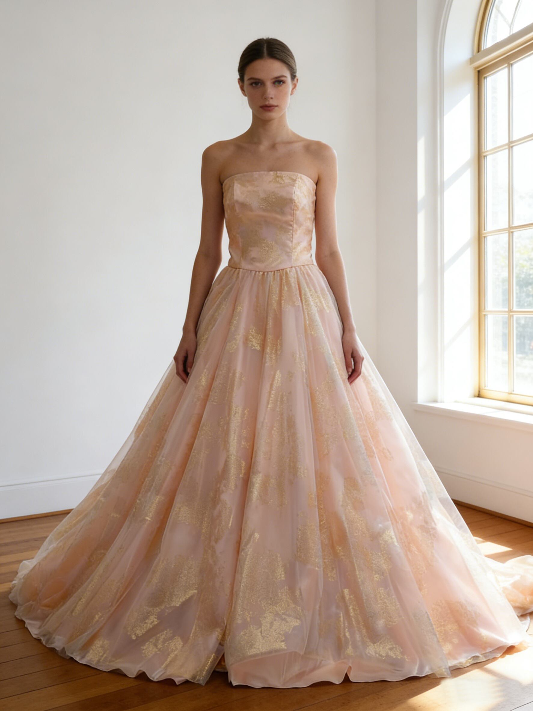 カラードレス ピンク ビスチェドレス シークインチュール ロング 花嫁 前撮り