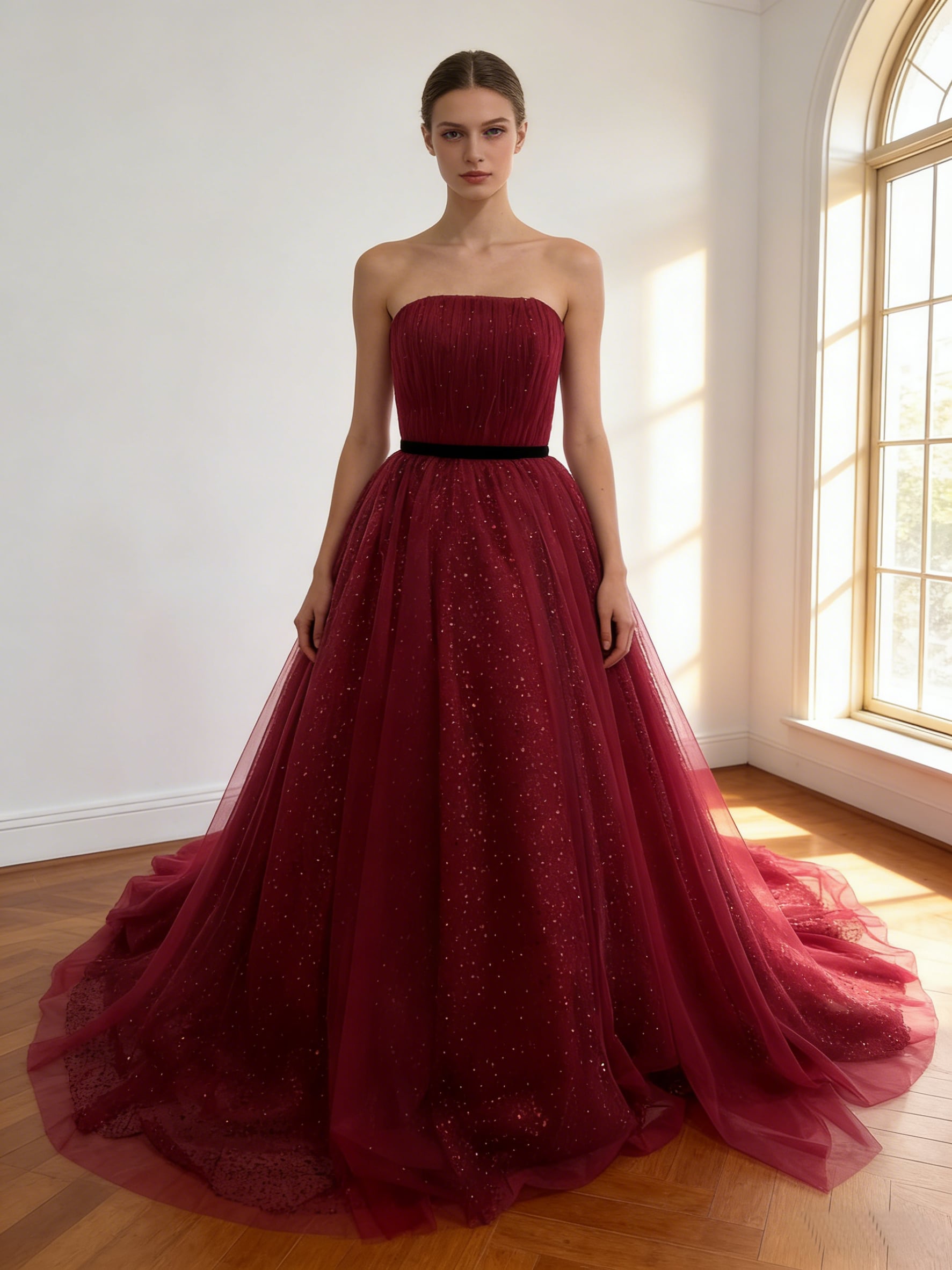 カラードレス ボルドー色 シークインチュール ビスチェドレス 華やかなトレーン 花嫁 前撮り