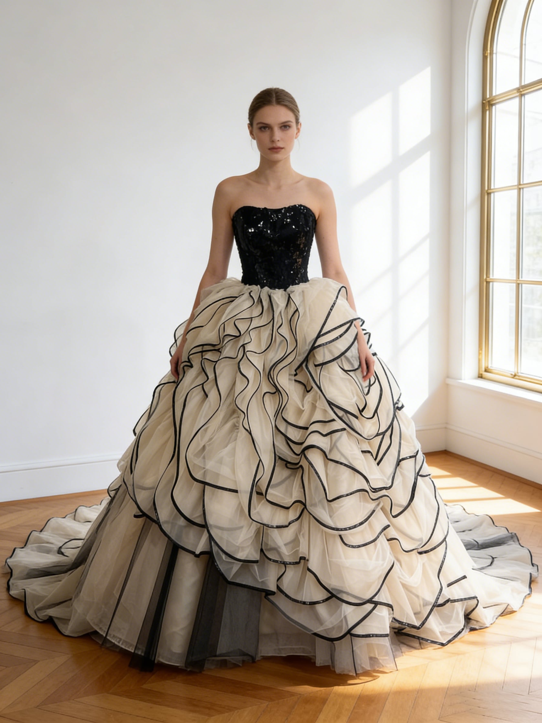 カラードレス 2色 目立つ 韓国風ドレス ウェーブ キラキラスパンコール ソフトチュール ビスチェドレス 花嫁