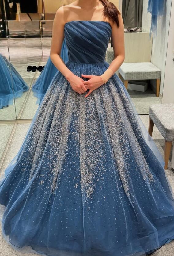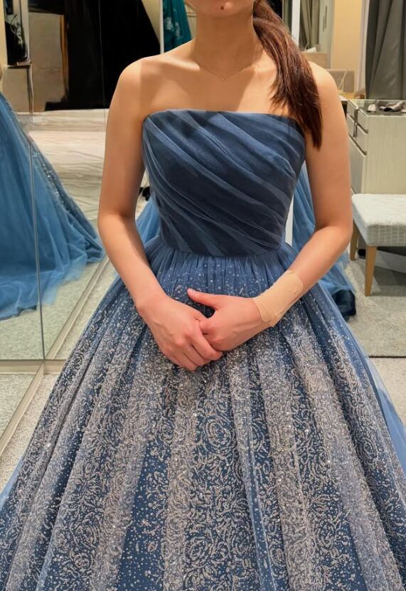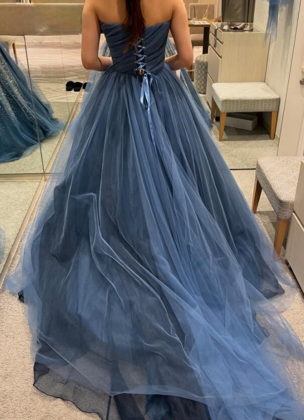 カラードレス ブルー キラキラ光る刺繍 編み上げ ソフトチュール ビスチェドレス 花嫁 前撮り