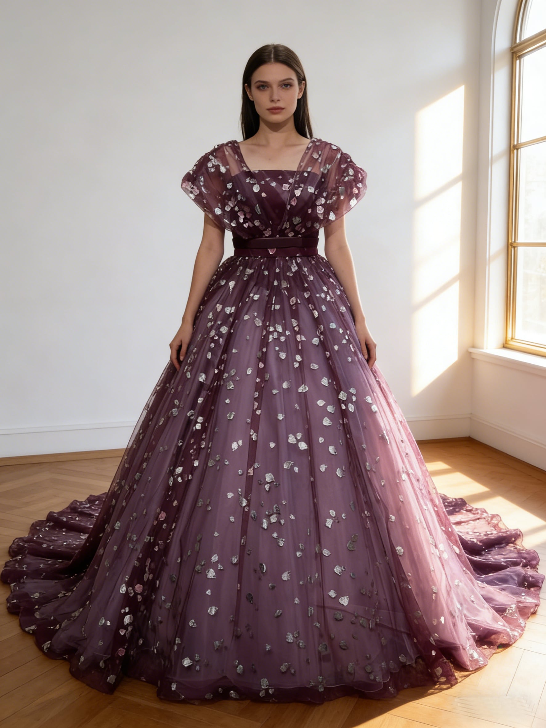 カラードレス パープル キラキラスパンコール ノースリーブ 華やかなトレーン 花嫁 前撮り