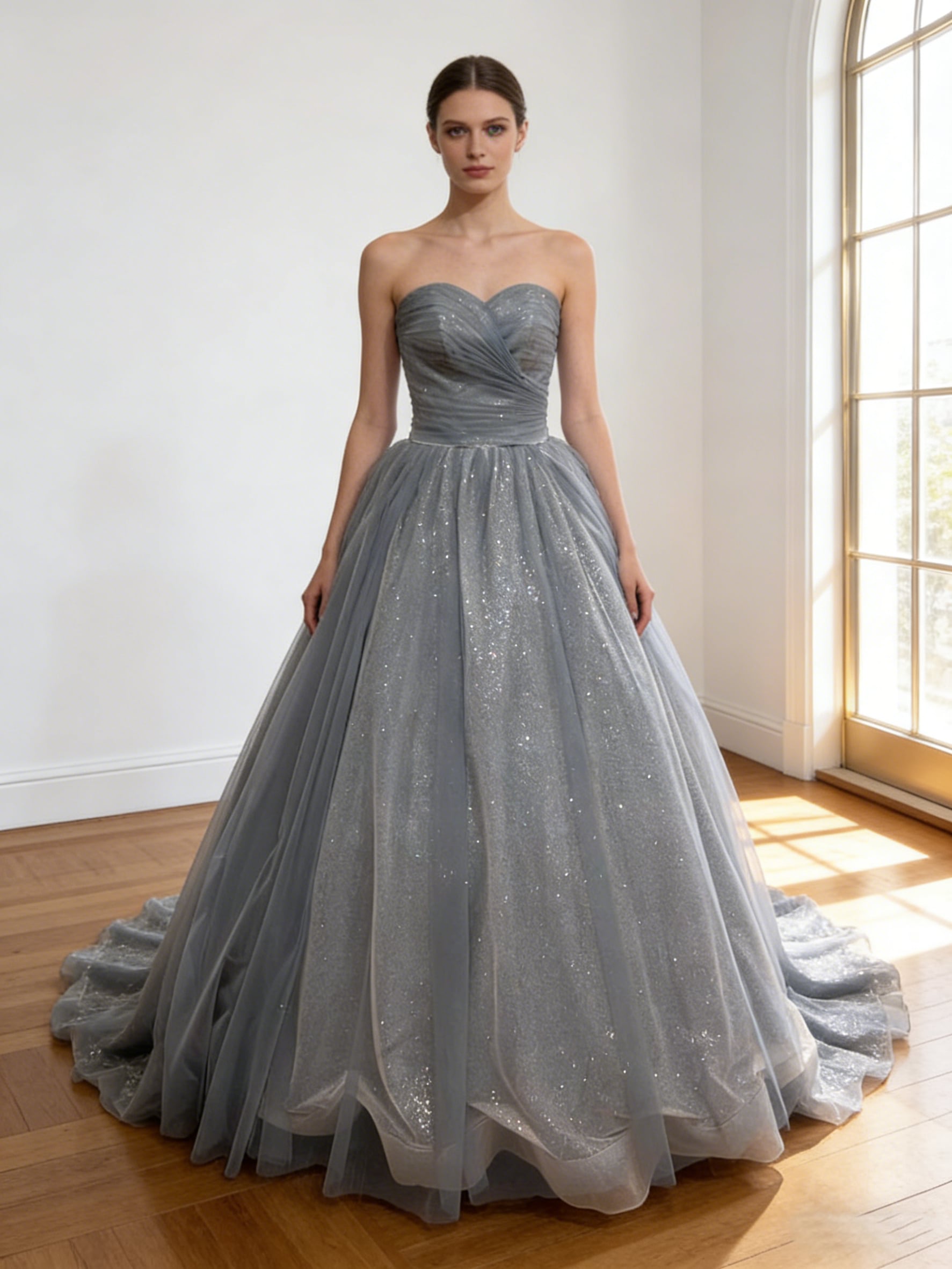 カラードレス ブルーグレー シークインチュール ビスチェドレス トレーン 演奏会/音楽会 花嫁