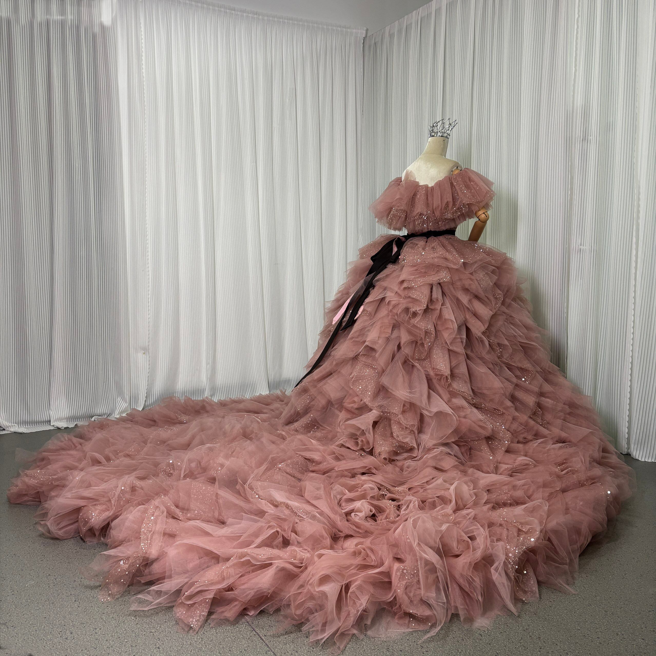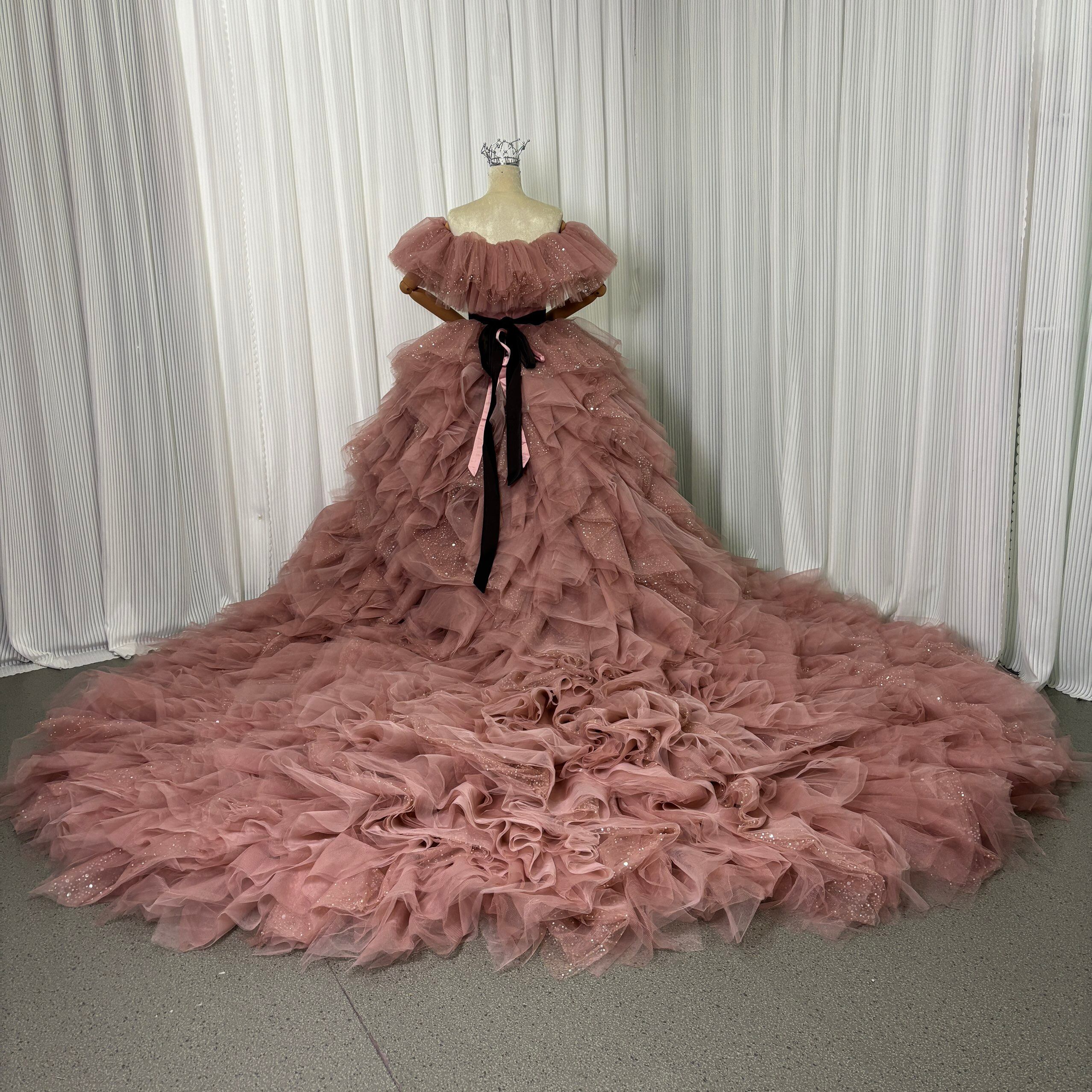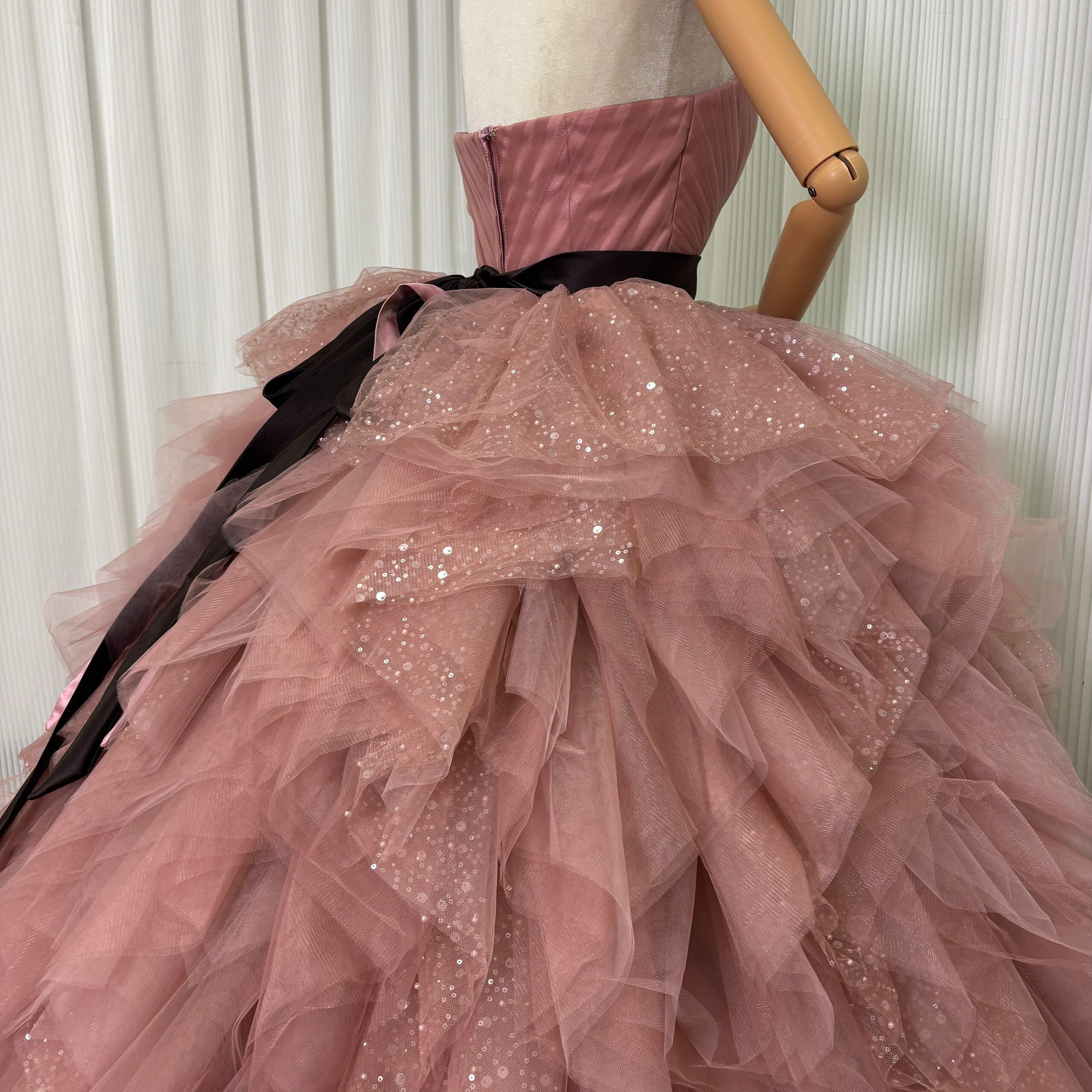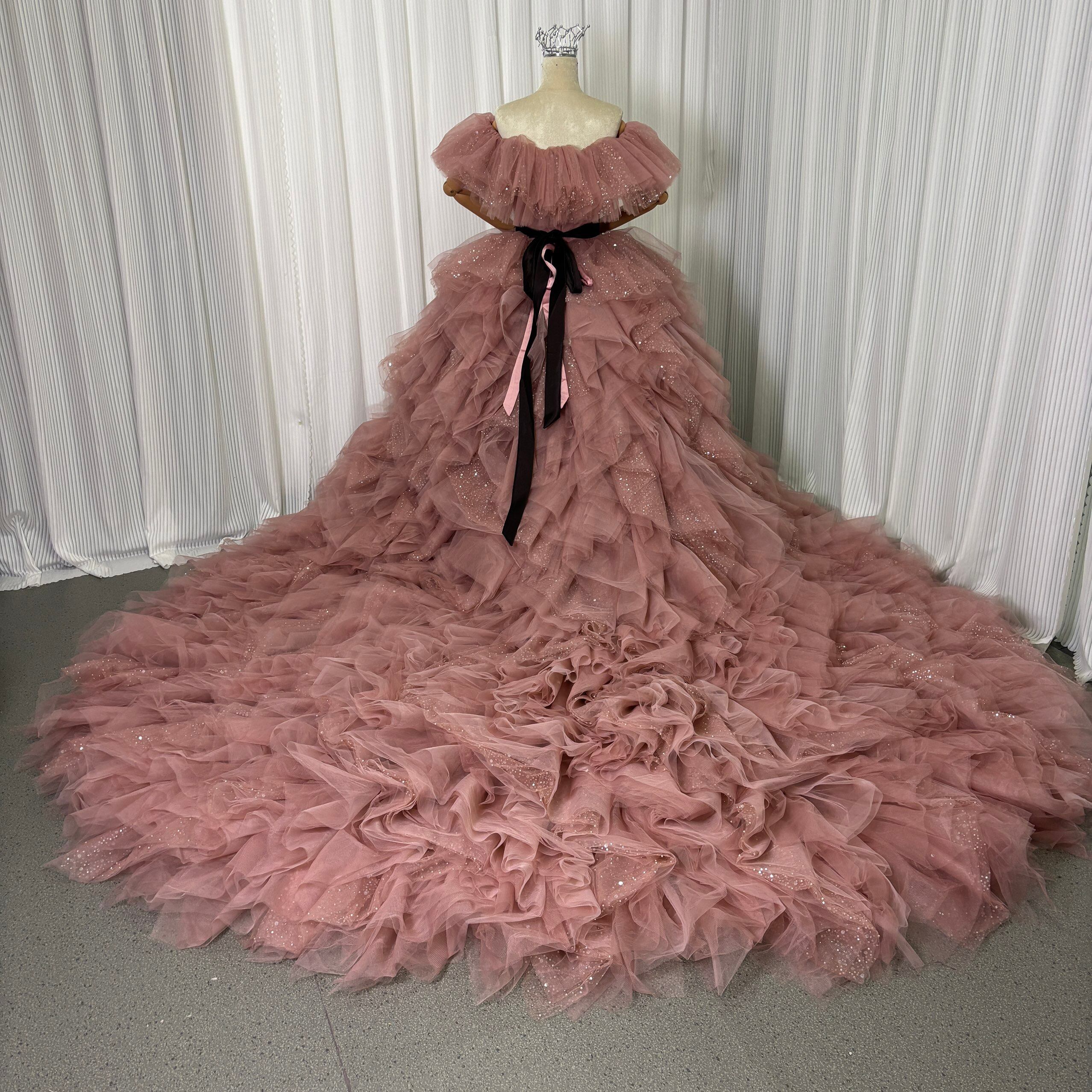 カラードレス くすみピンク 取り外し可能なオフショルダー インポートビジューレース ボリュームドレス ツーピース 結婚式