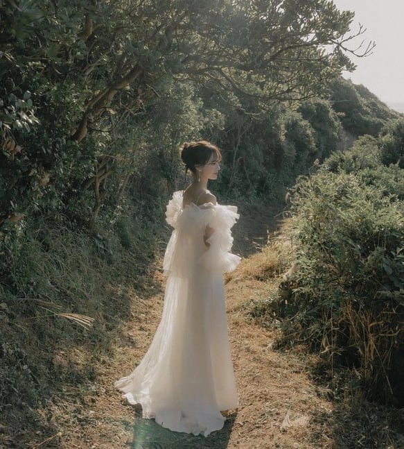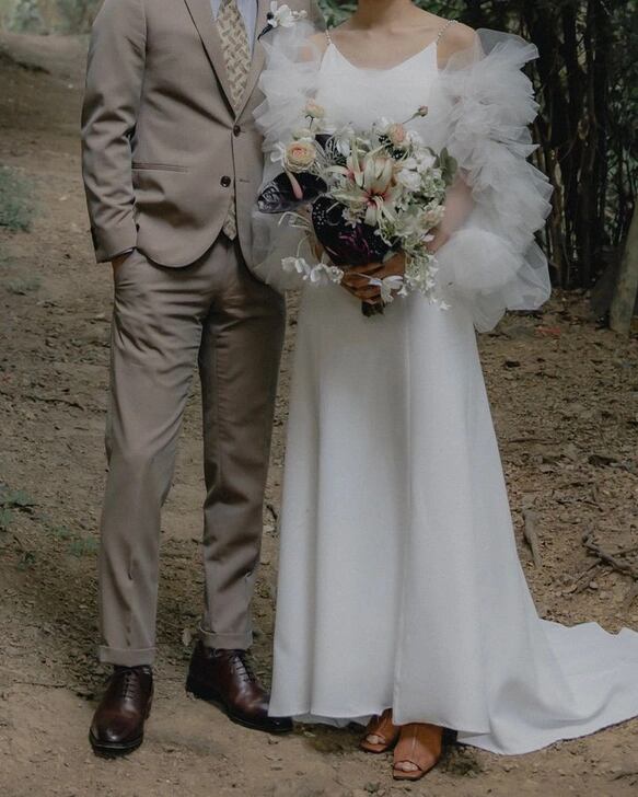 実例写真! ウエディングドレス ツーピース オフホワイト パール トップス+スカート 花嫁 前撮り