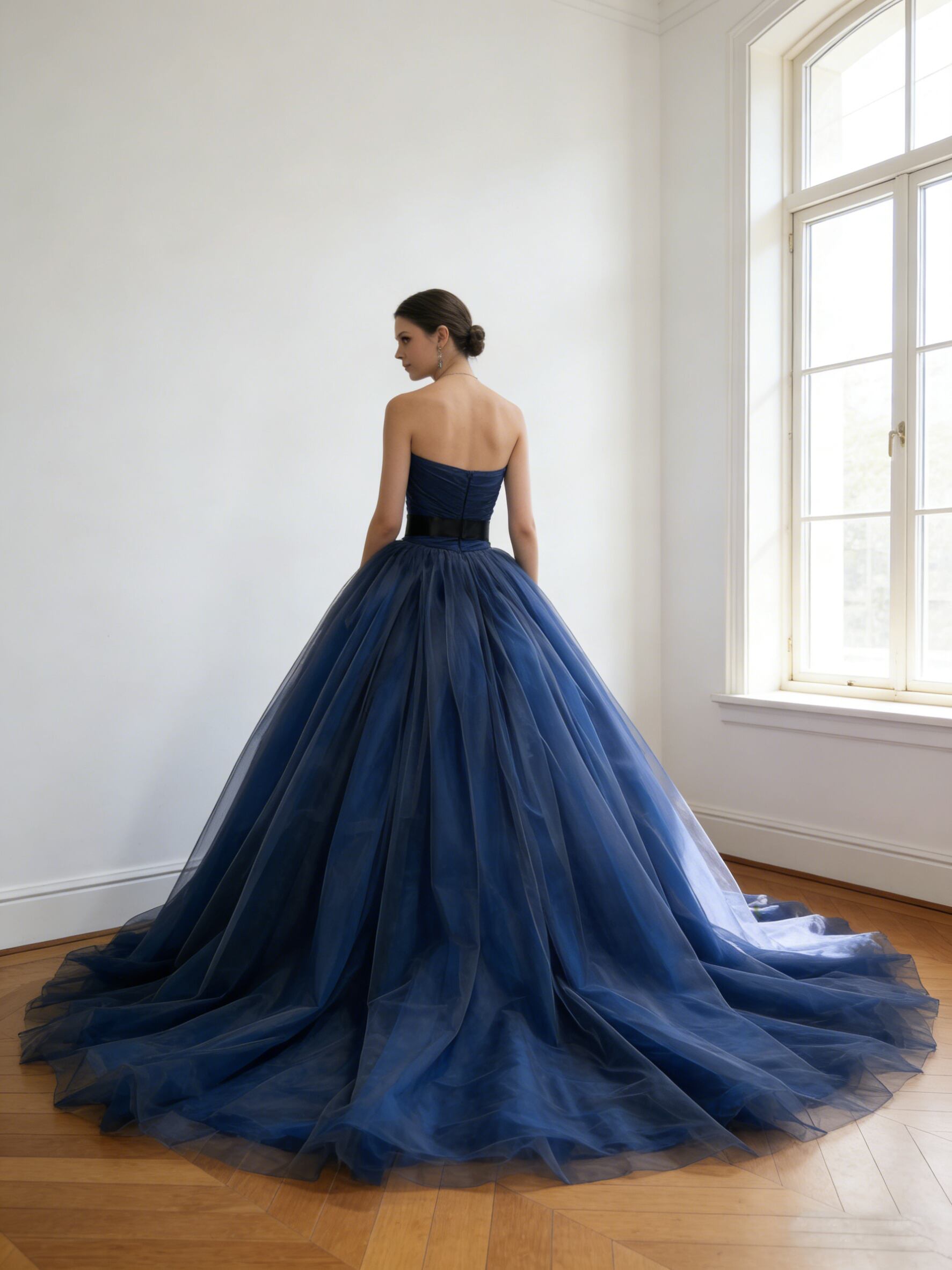 カラードレス ジュエルネイビー ソフトチュール ビスチェドレス トレーン 花嫁 前撮り