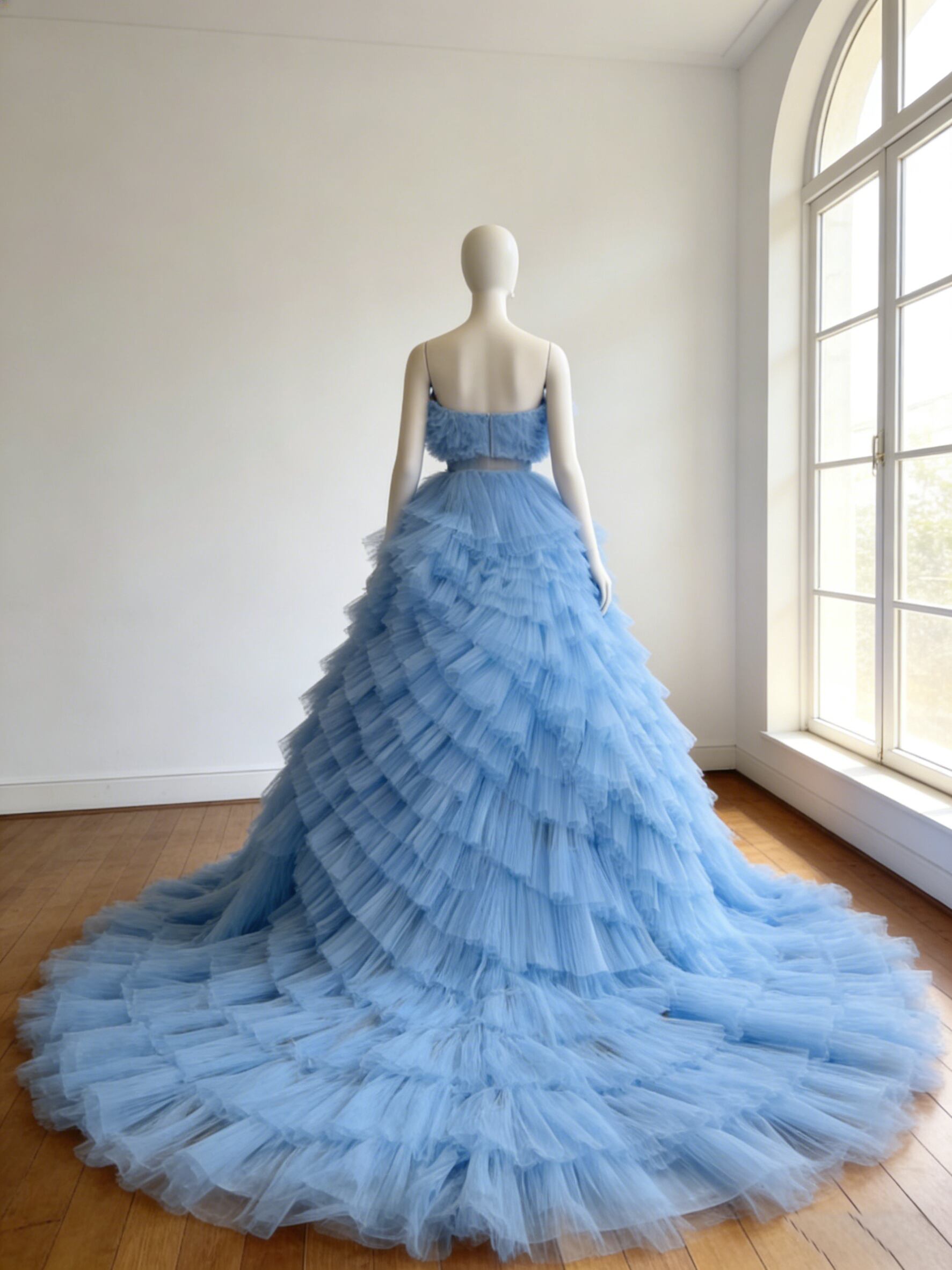カラードレス 爽やかで優しいブルー ビスチェドレス もこもこドレス 華やかなトレーン 結婚式 前撮り