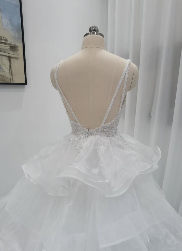 ウエディングドレス キャミソール キラキラ光る刺繍 華やかなトレーン バックレス ブライダル