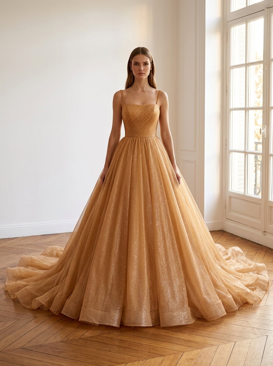 カラードレス ブラウン キャミソール シークインチュール 華やかなトレーン 花嫁 演奏会/音楽会