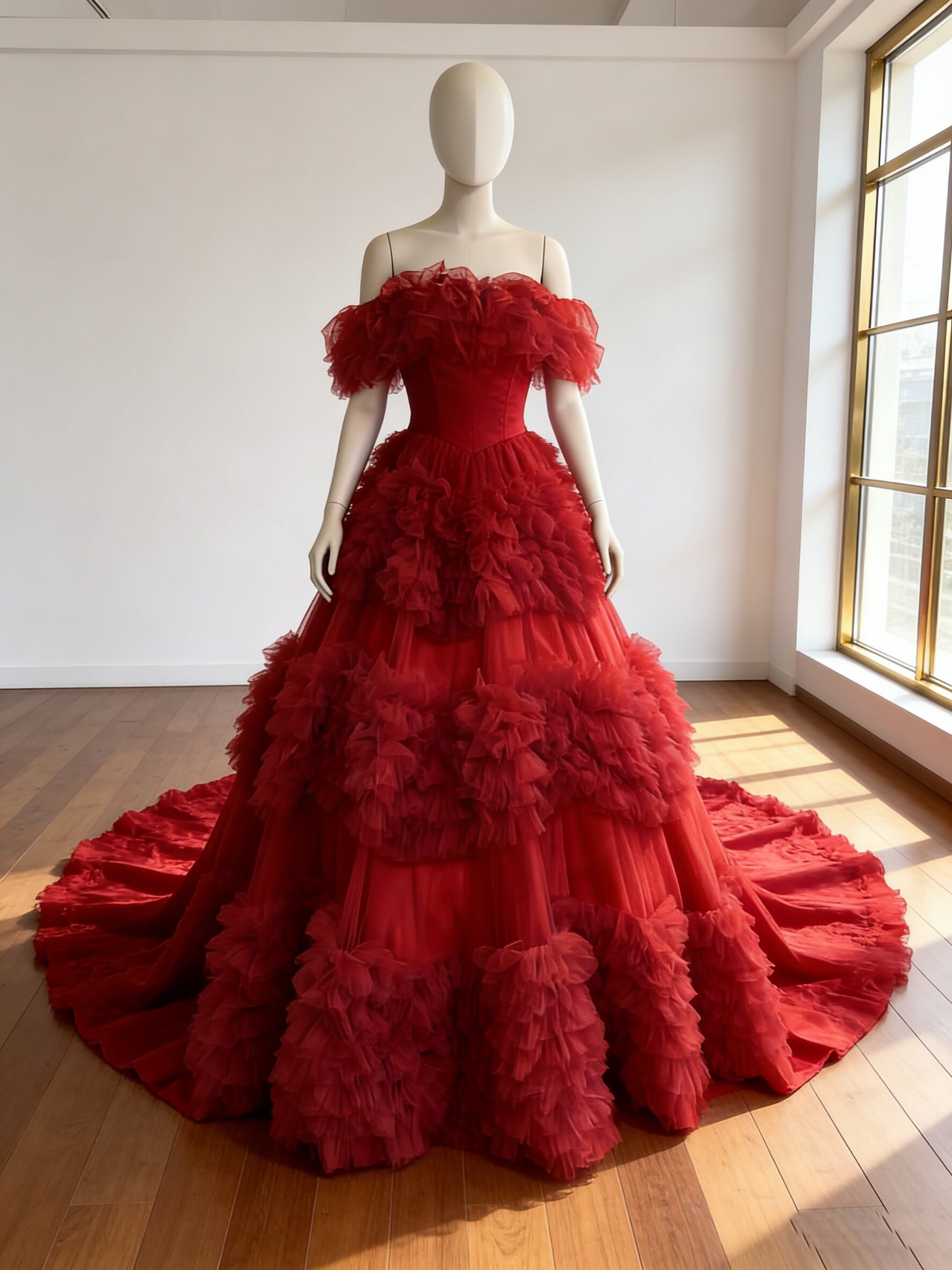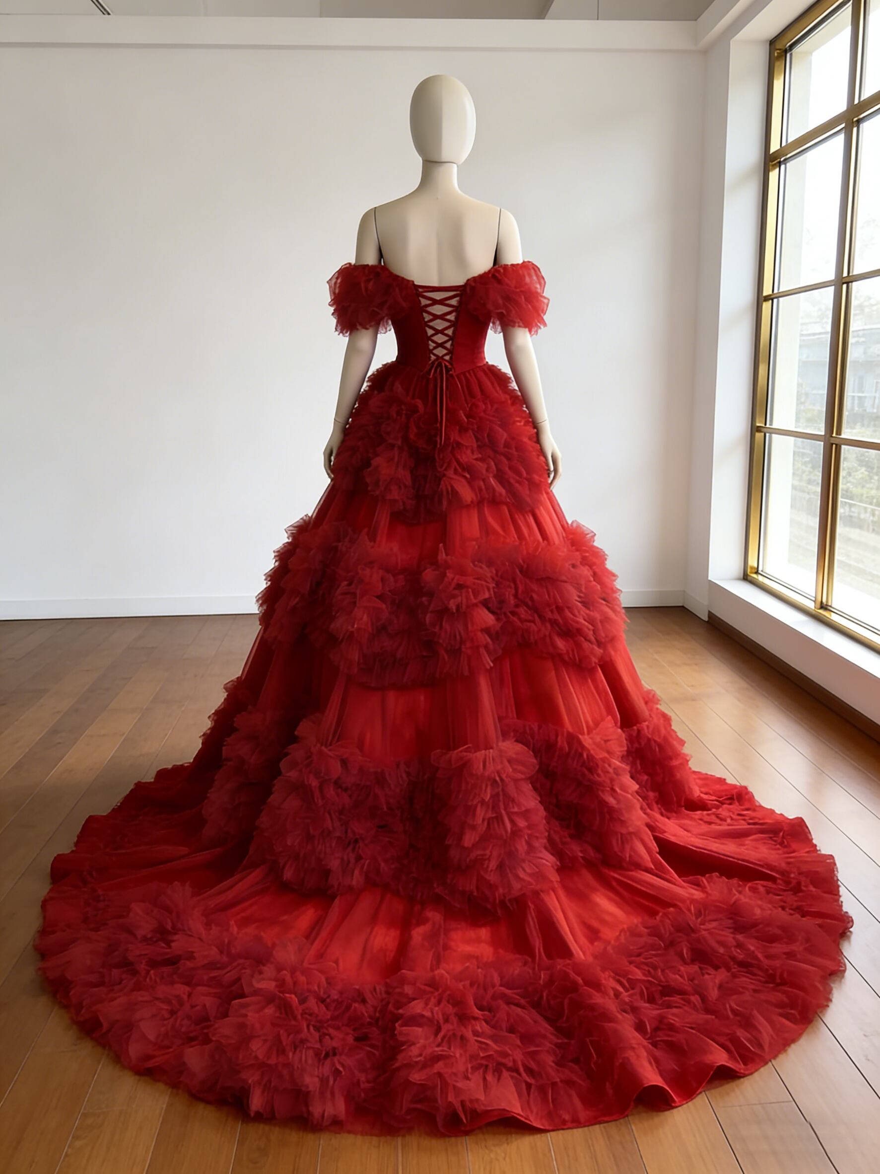 カラードレス ボルドー色 オフショルダー 編み上げ ボリュームドレス ボリュームドレス ブライダル 花嫁 前撮り