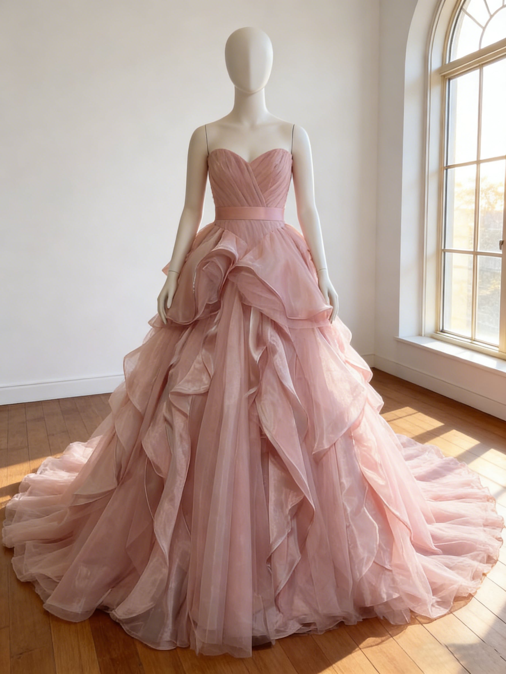 カラードレス ピンク アシンメトリードレス 可愛い 編み上げ 華やかなトレーン ブライダル