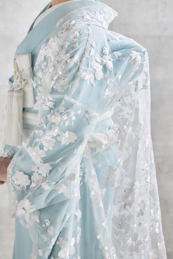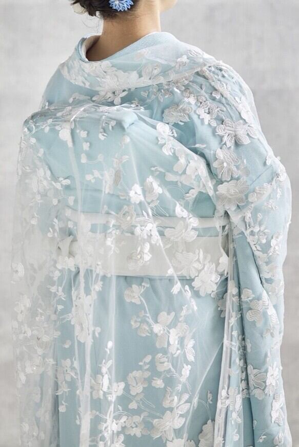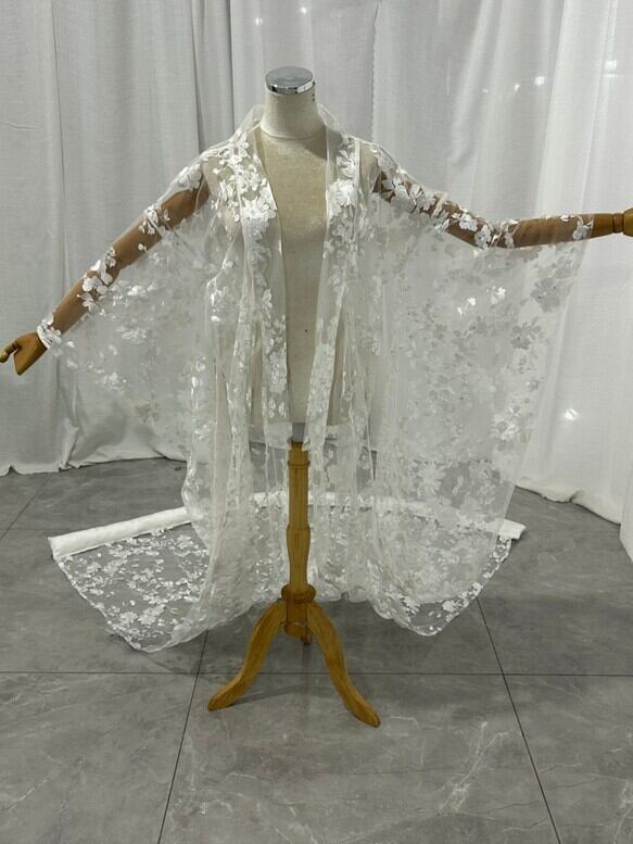 実例写真! 花边外卦 繊細なレース オフホワイト 華やかなトレーン 前撮り