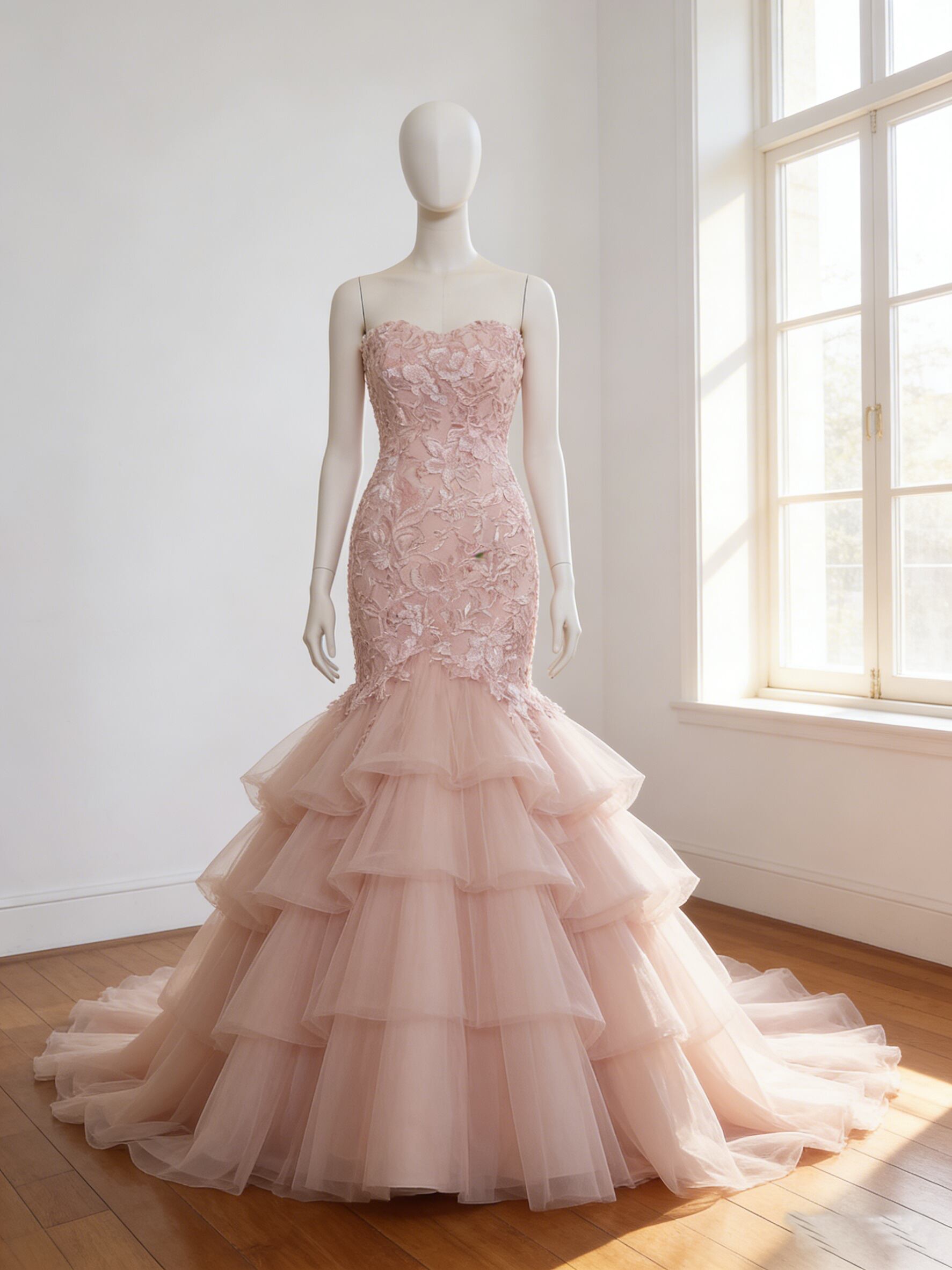 カラードレス ピンク ビスチェドレス 繊細なレース 編み上げ ソフトマーメイドライン華やかなトレーン 結婚式