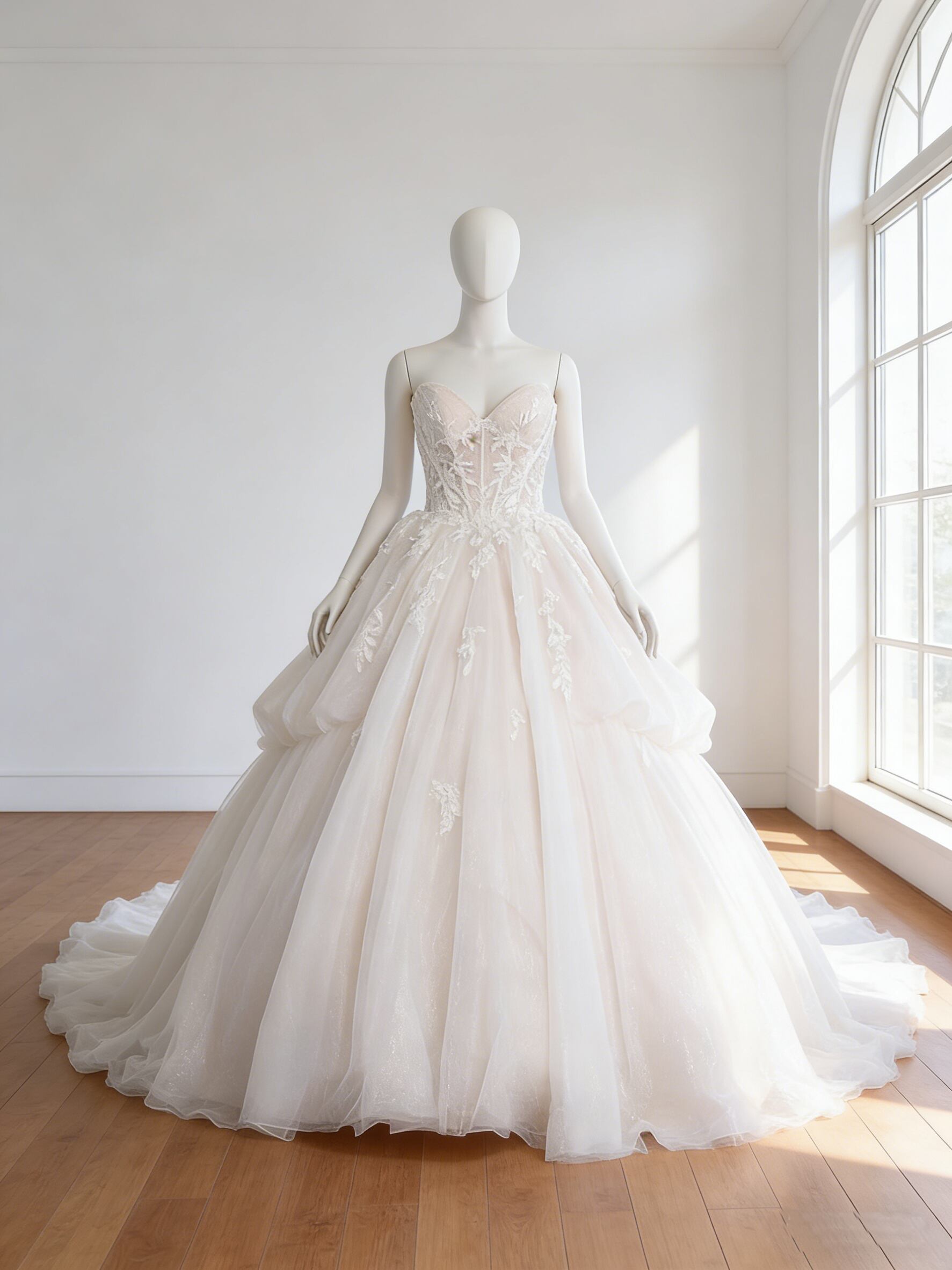 ウエディングドレス オフホワイト 繊細なレース ビスチェドレス 編み上げ 華やかなトレーン 花嫁 前撮り