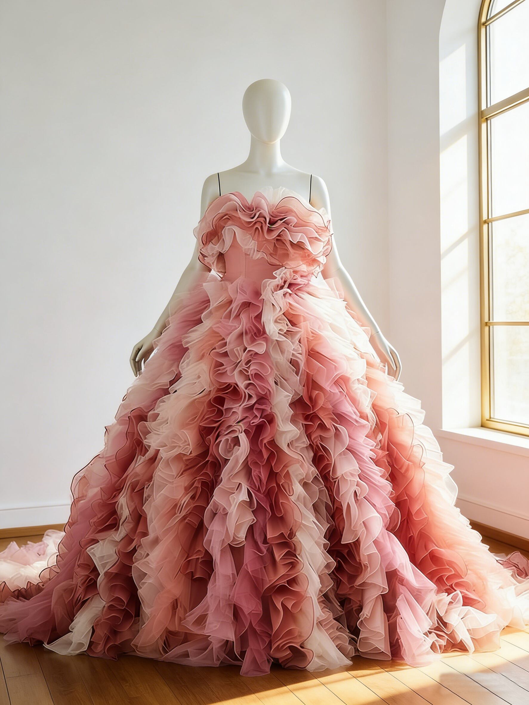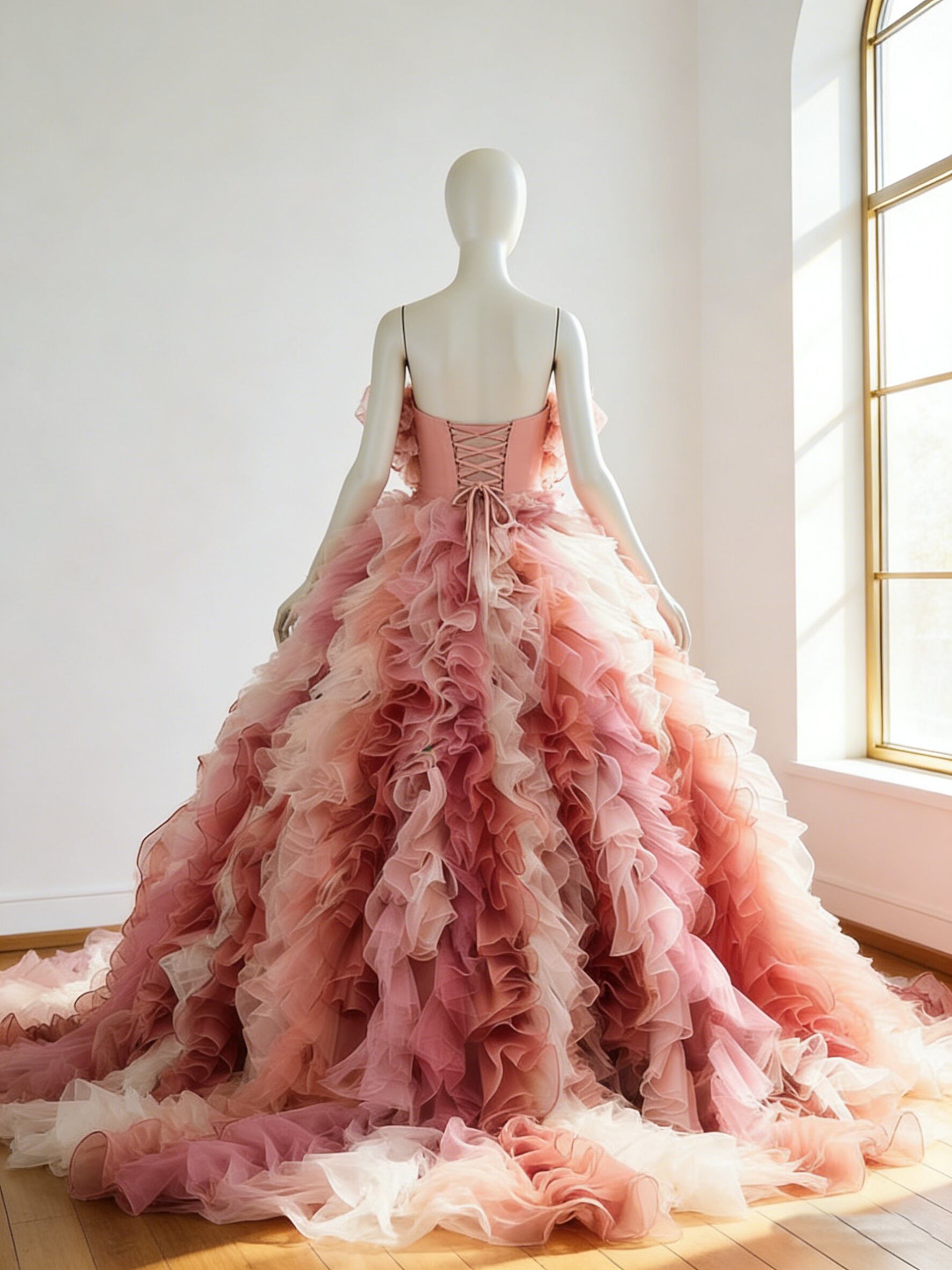 カラードレス ピンク アシンメトリー風 編み上げ ビスチェドレス ボリュームドレス トレーン 花嫁 前撮り
