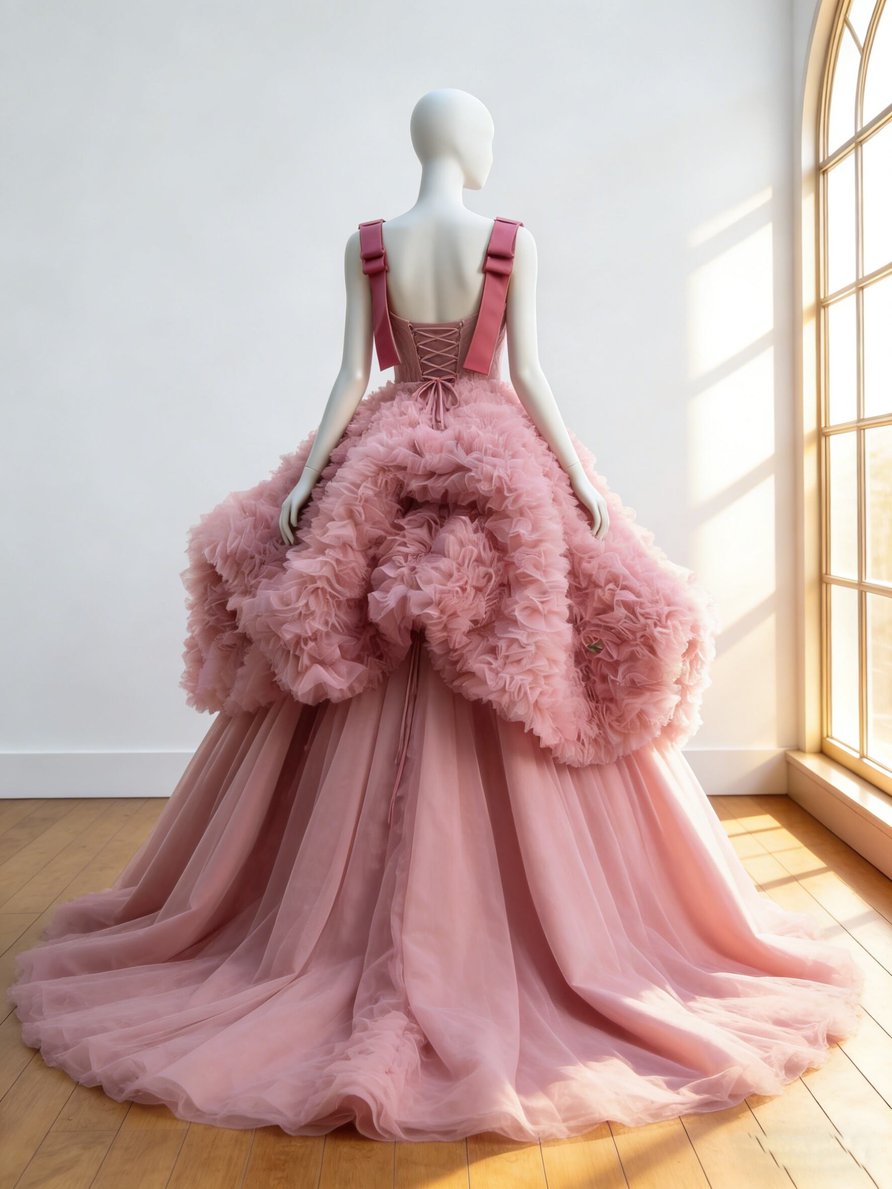カラードレス ピンク キャミソール 編み上げ もこもこドレス 華やかなトレーン 可愛い 結婚式 前撮り