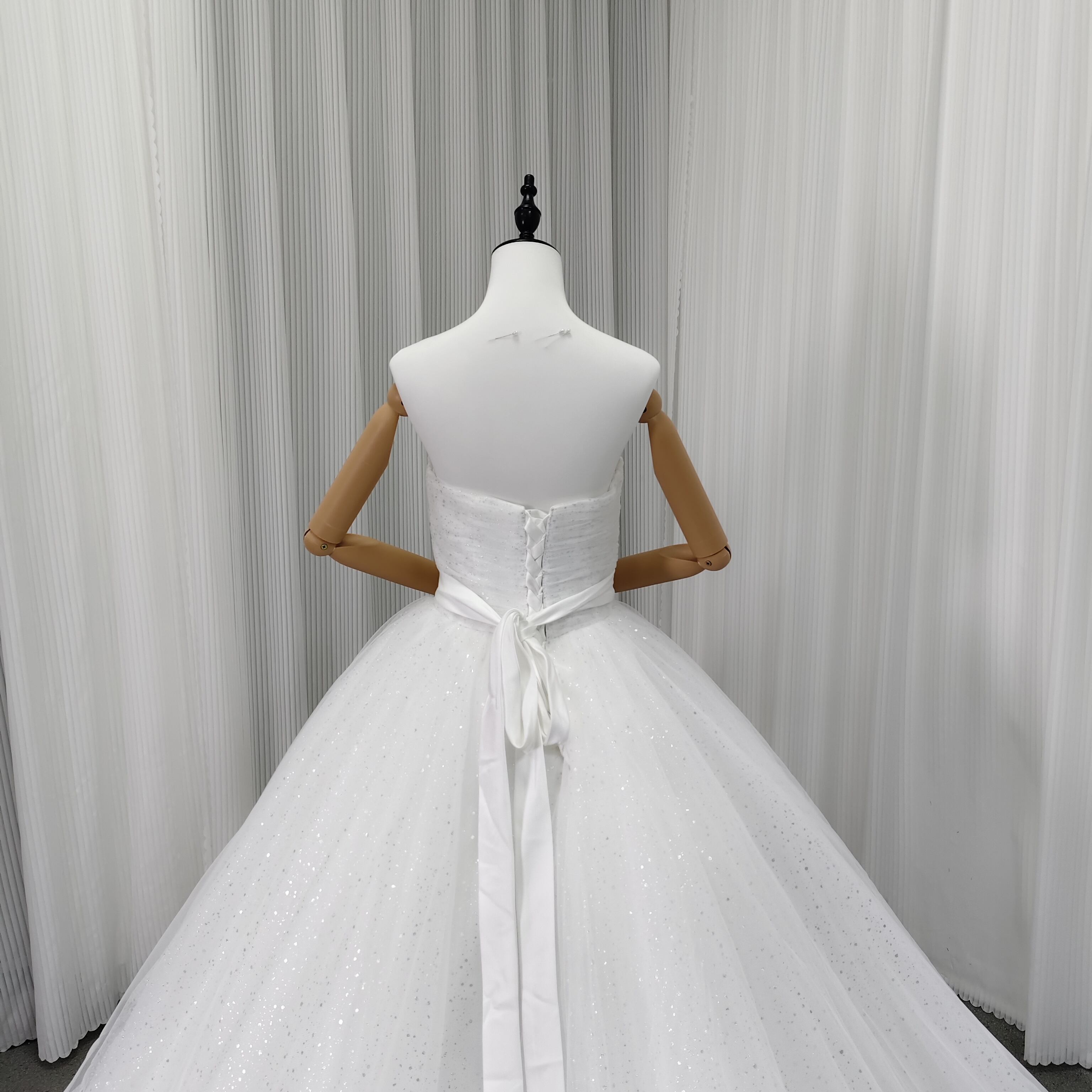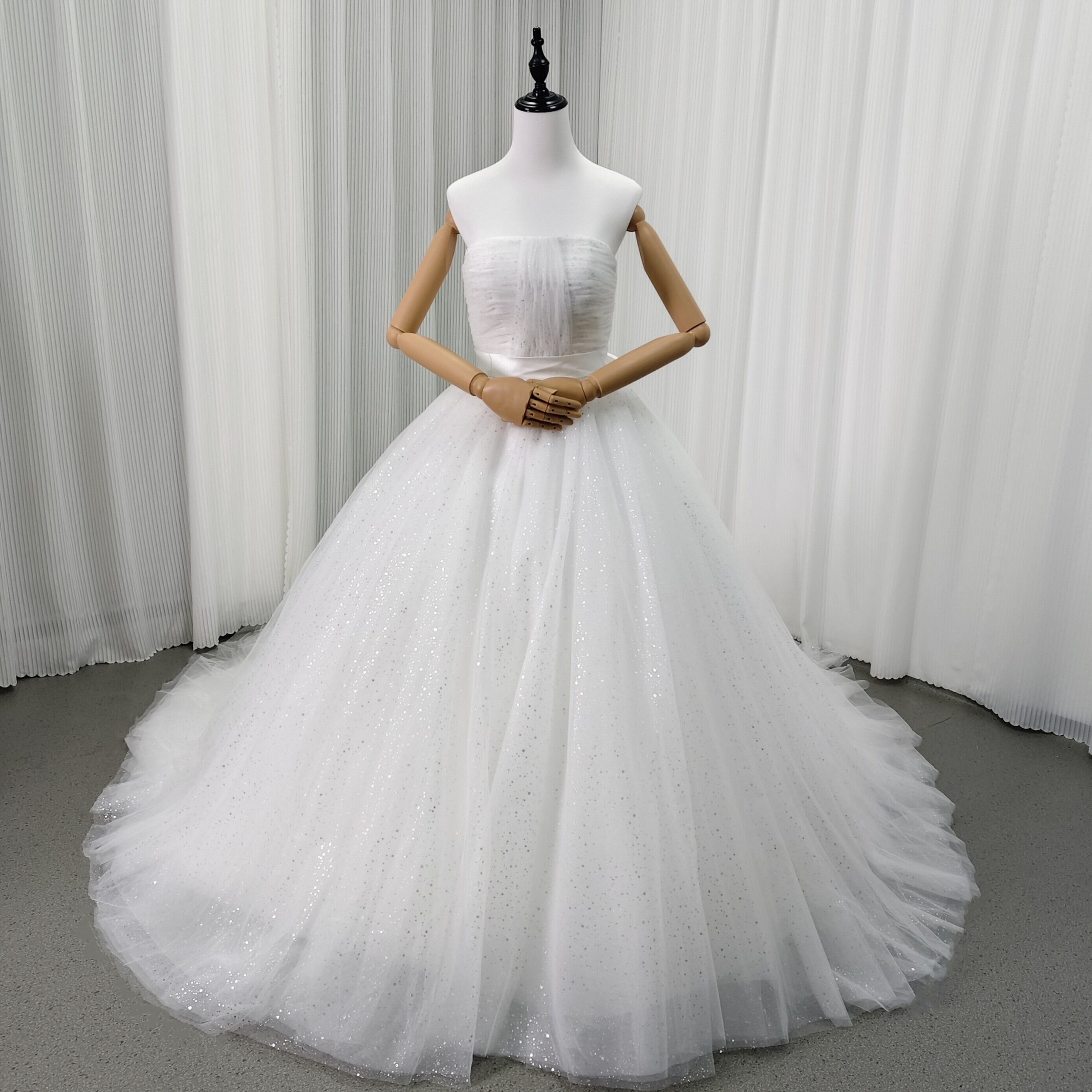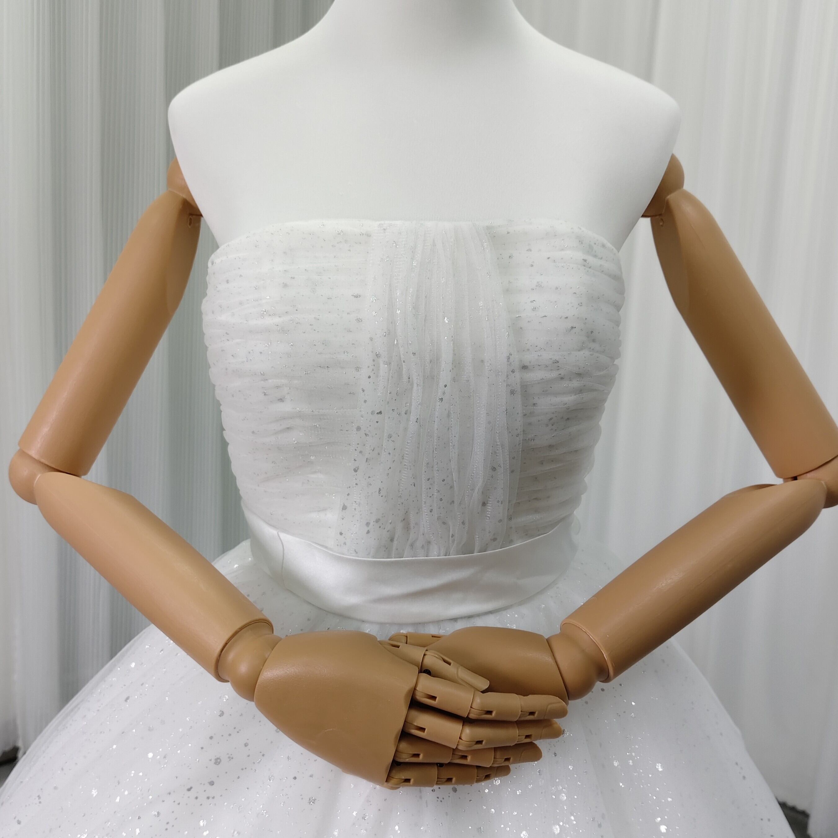 ウエディングドレス オフホワイト ビスチェドレス ソフトチュール シークインチュール ブライダル
