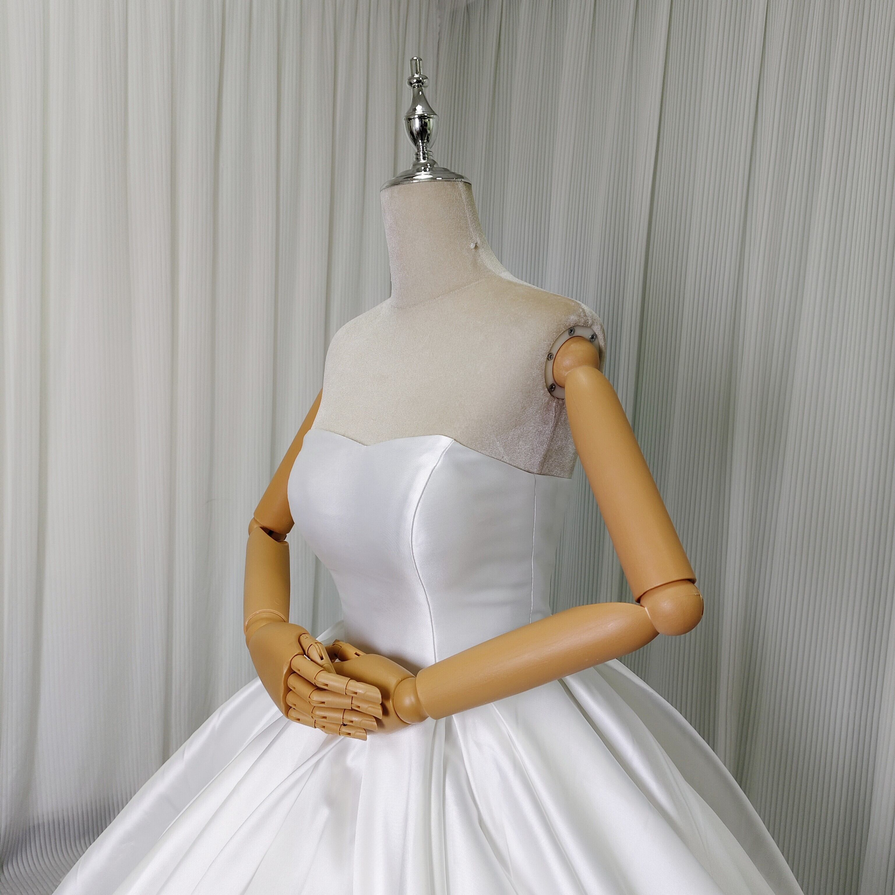 ウエディングドレス オフホワイト ミカドサテン ビスチェドレス ラッフルフリル +ふっくら柔らかなバックリボン ブライダル