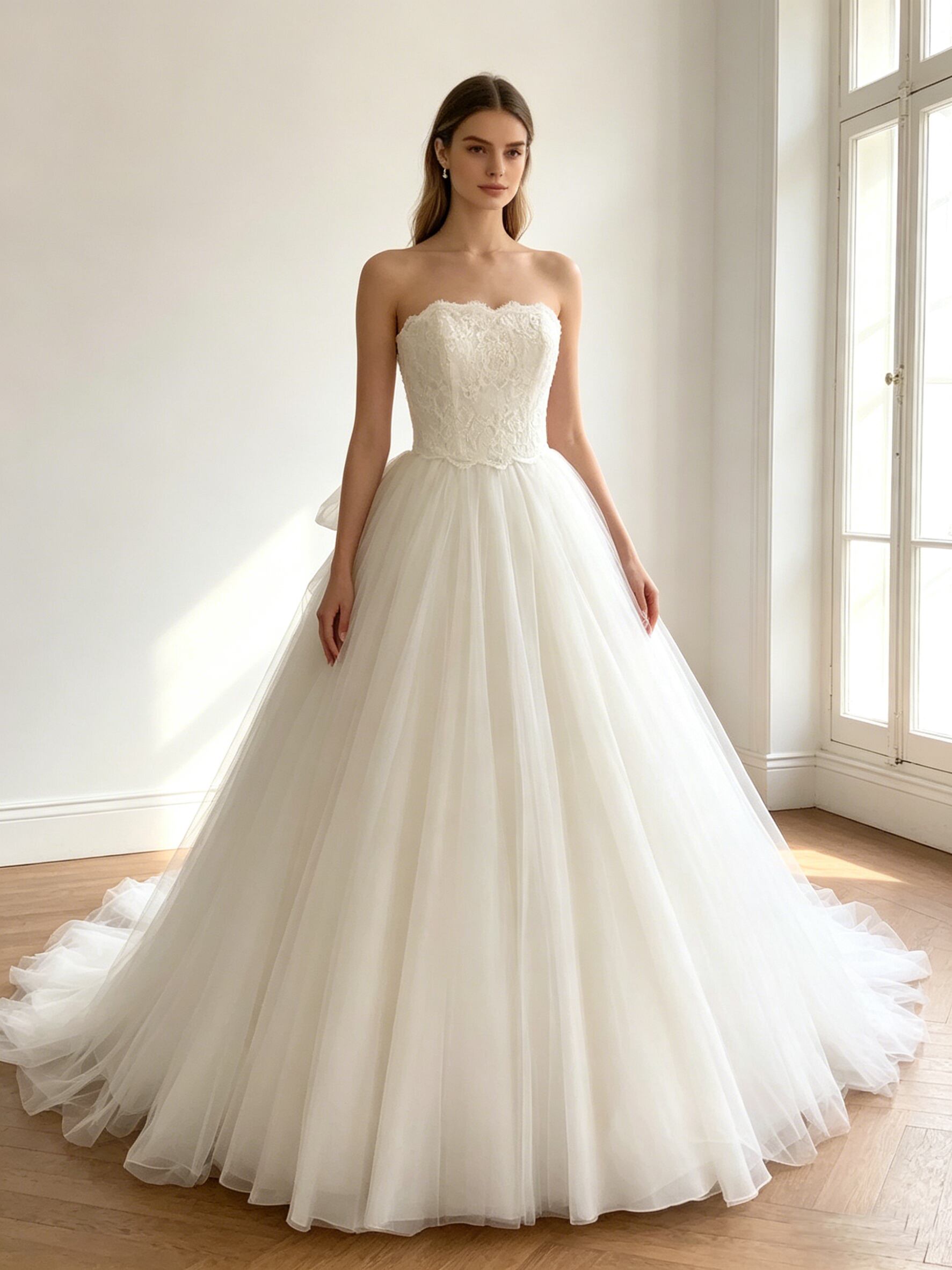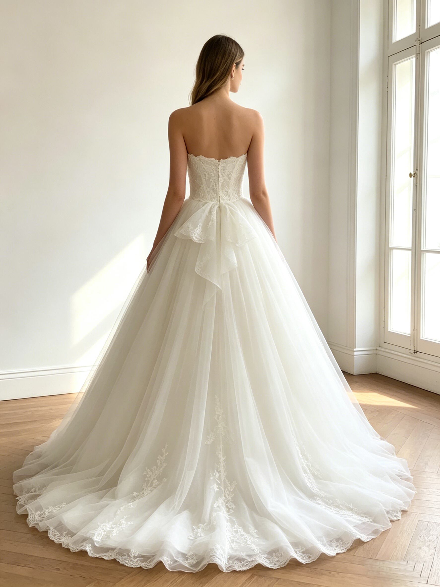 ウエディングドレス オフホワイトビスチェドレス 繊細なレース ブライダル ソフトチュール