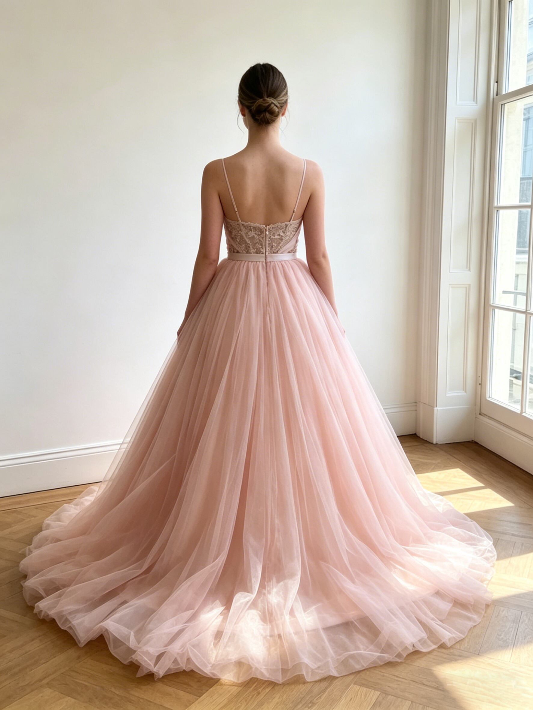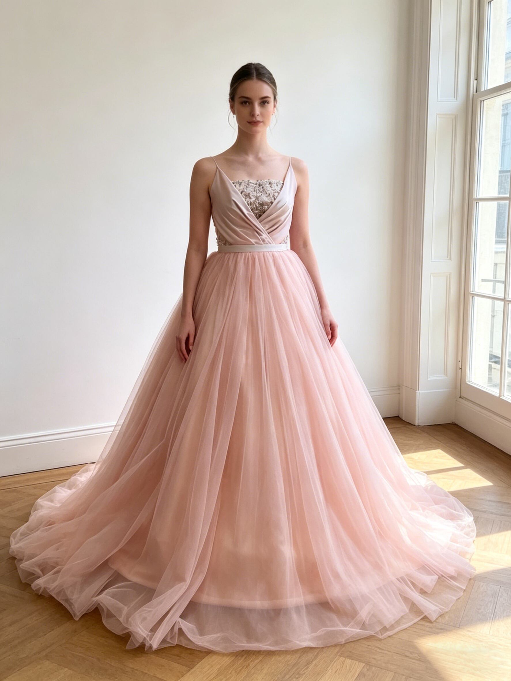 カラードレス ピンク キャミソール ソフトチュール ロングトレーン 花嫁 前撮り 演奏会/音楽会