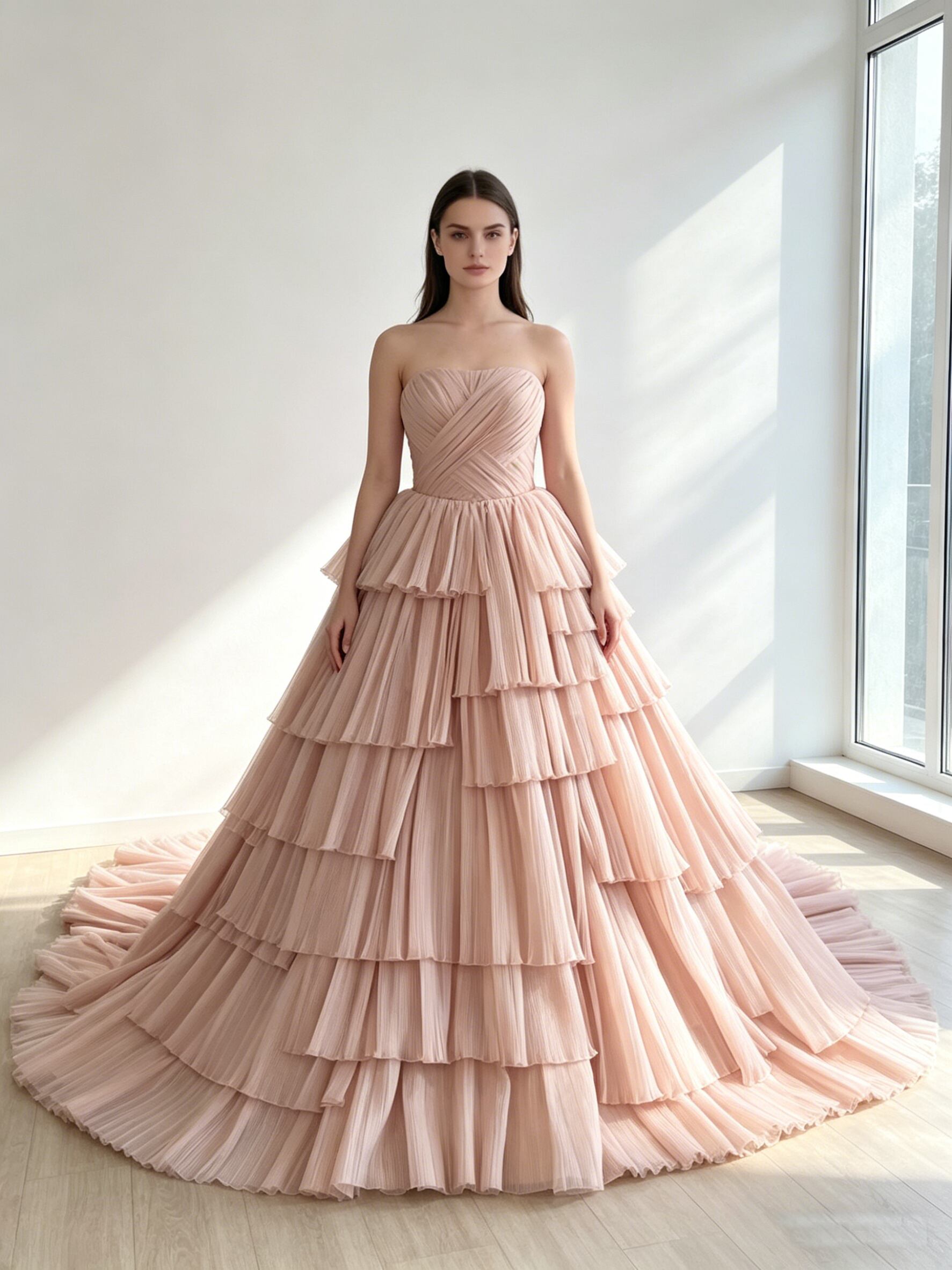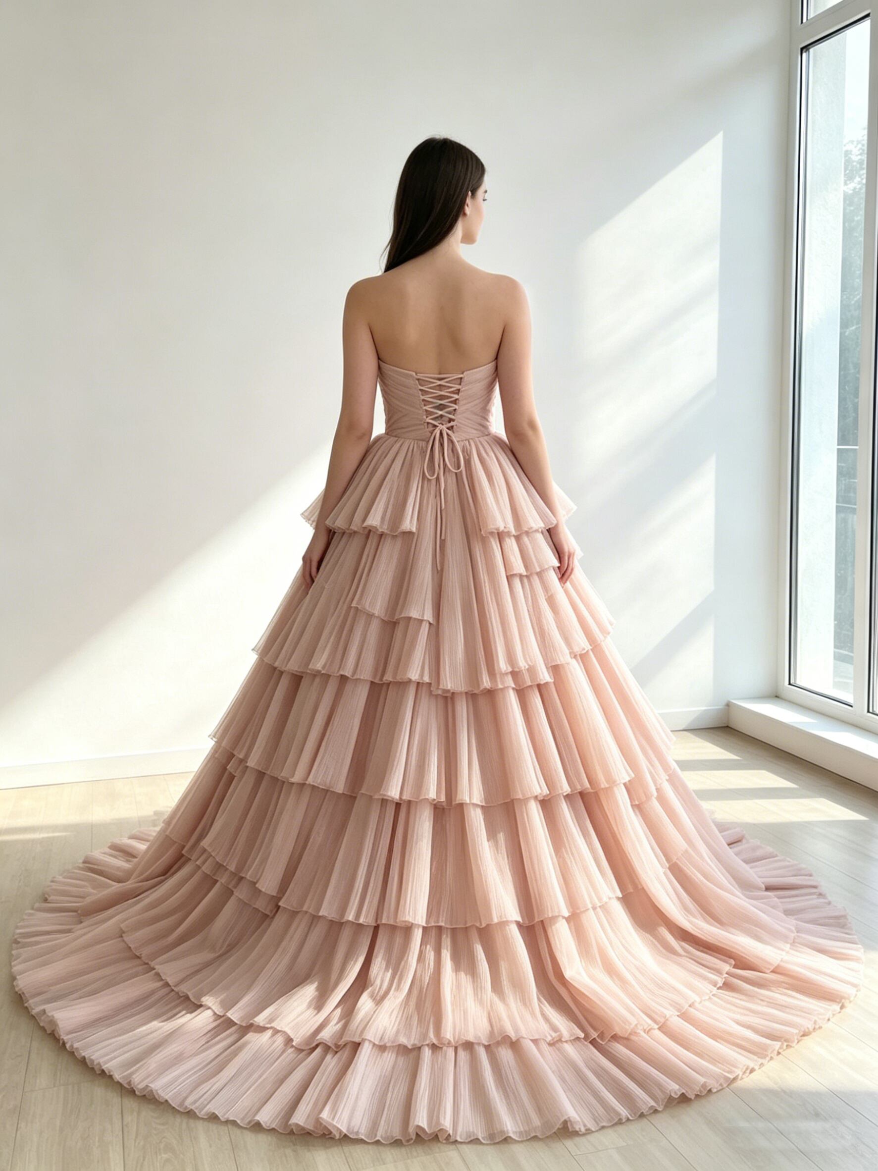 カラードレス くすみピンク アシンメトリードレス スリット 華やかなトレーン ビスチェドレス 花嫁 前撮り