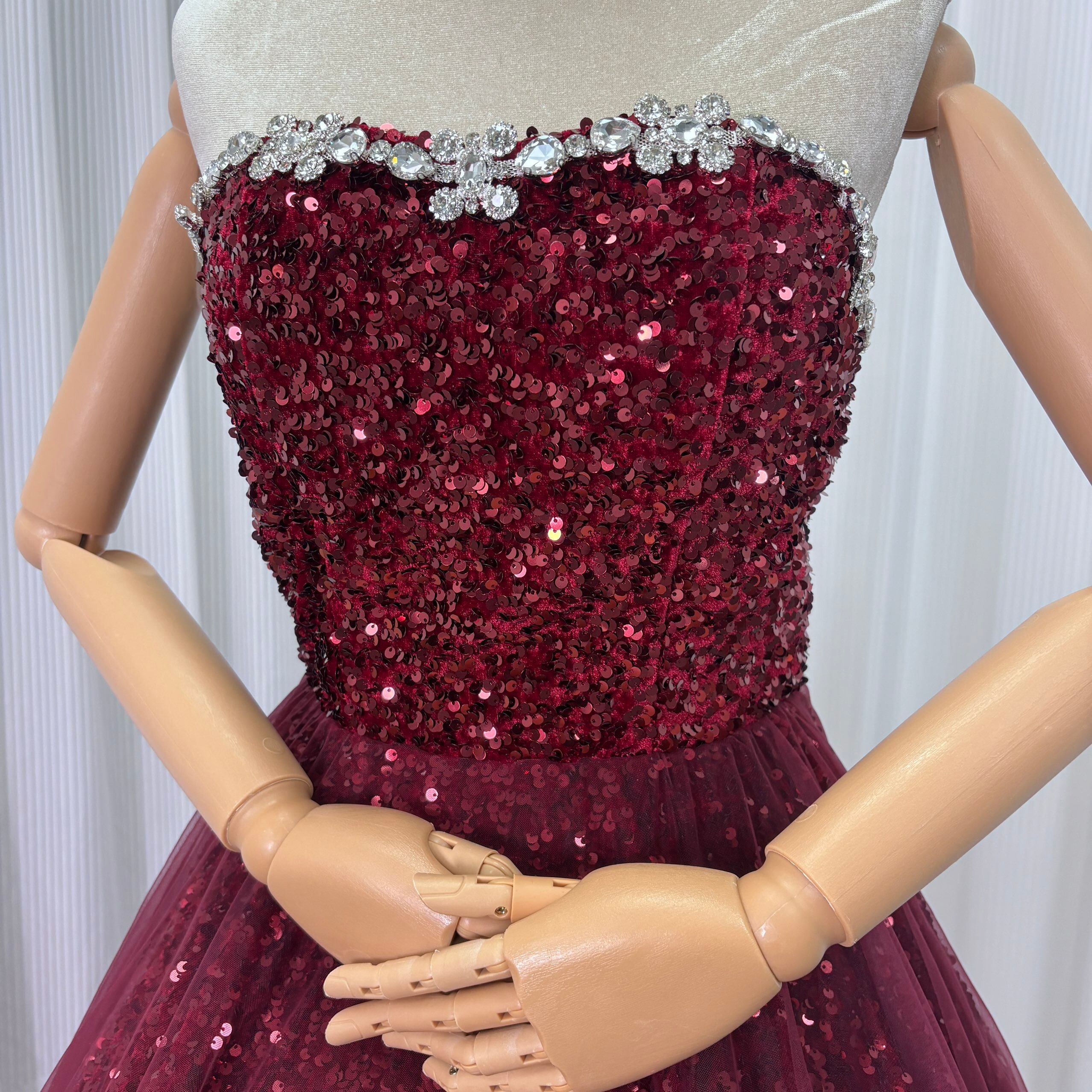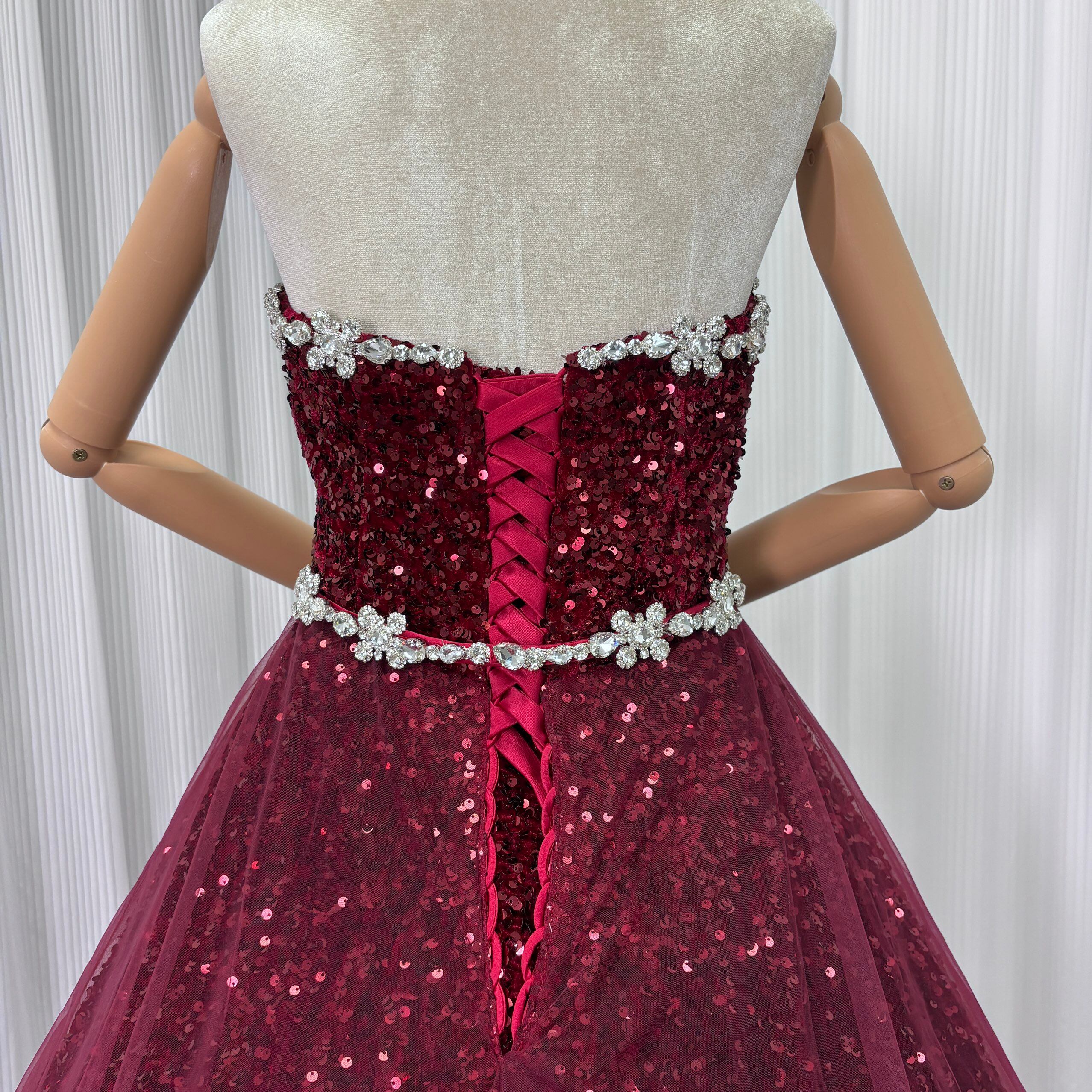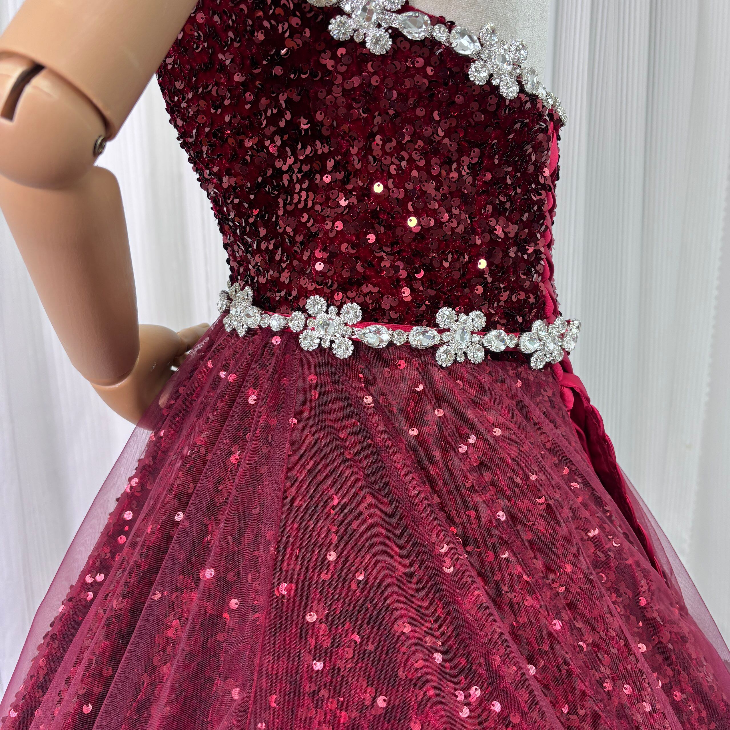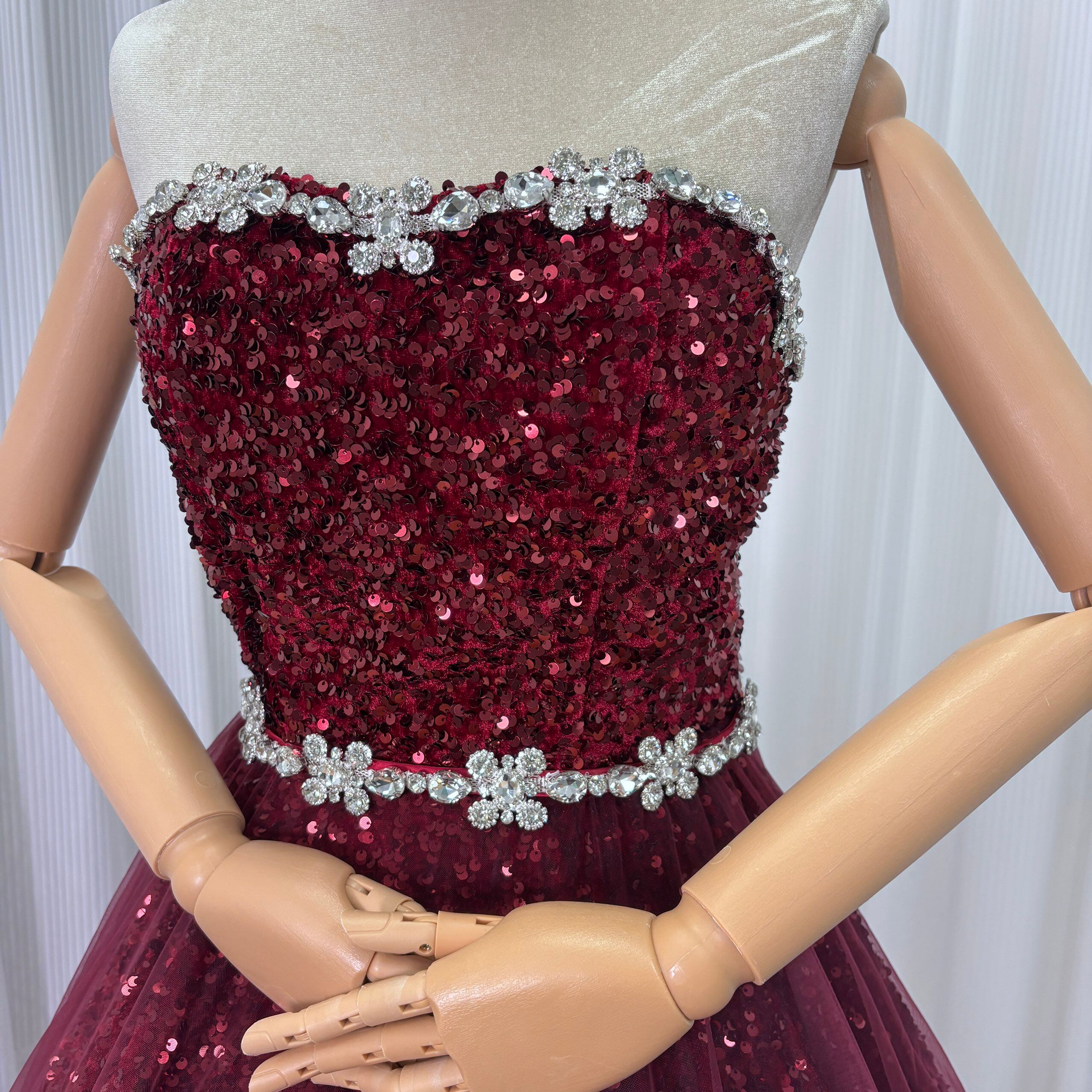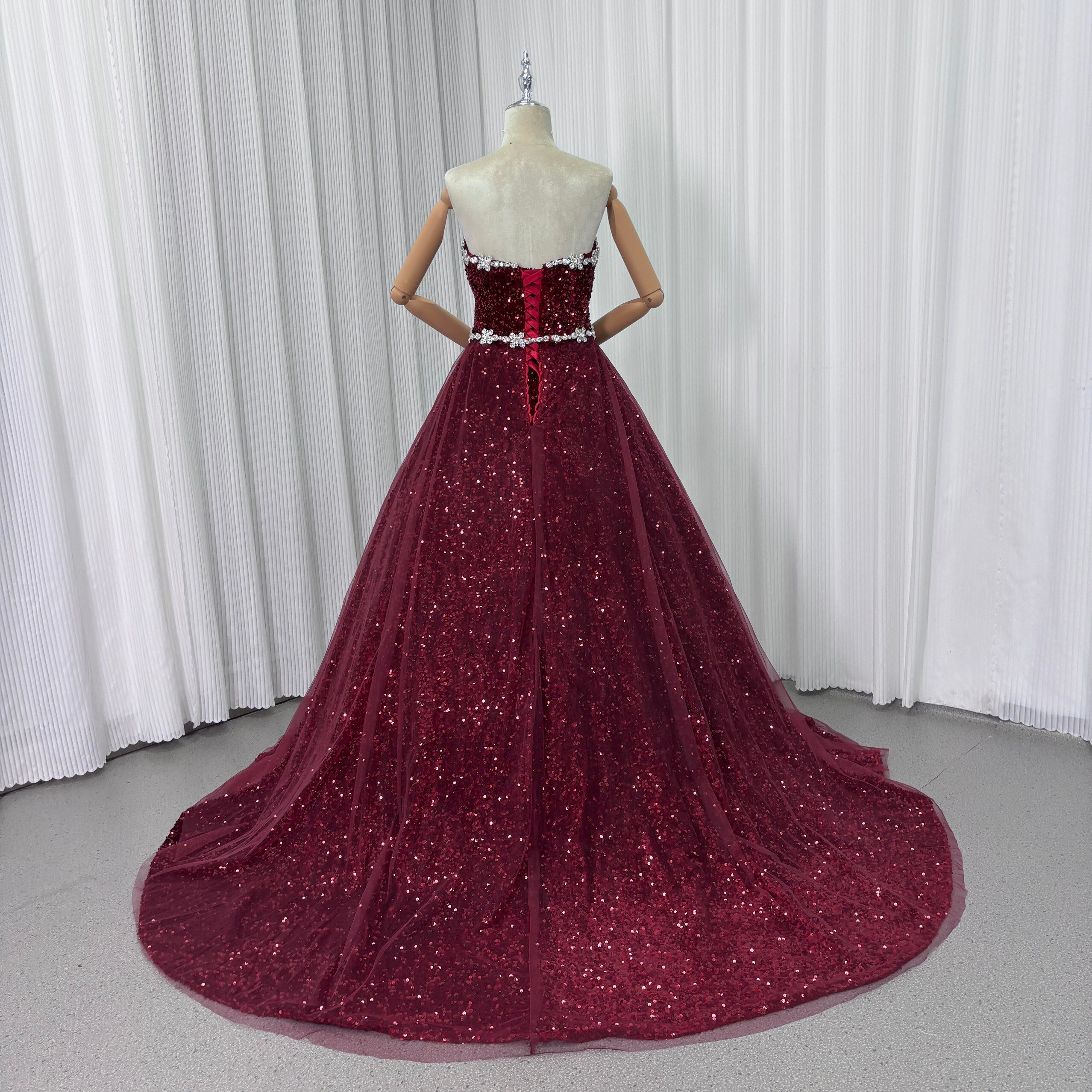カラードレス ボルドー色 ビジュー キラキラスパンコール ビスチェドレス 華やかなトレーン 韓国風ドレス 花嫁 前撮り 演奏会/音楽会