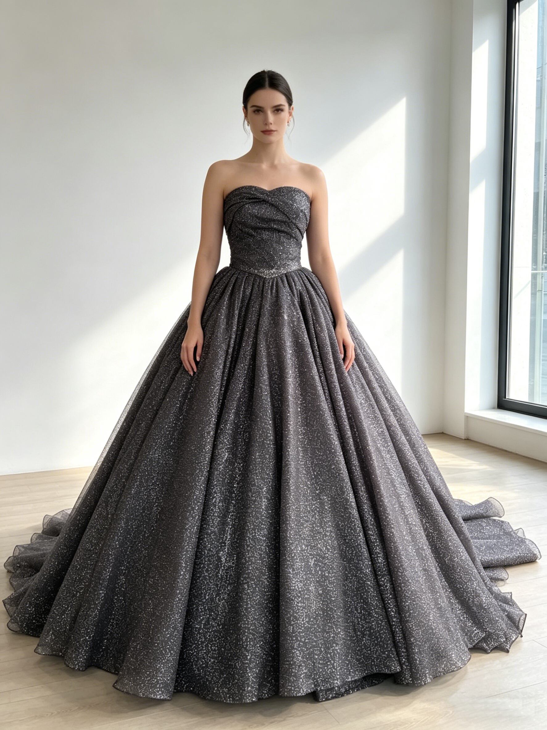 カラードレス シルバーグレー スリット シークインチュール 編み上げ 華やかなトレーン 演奏会/音楽会