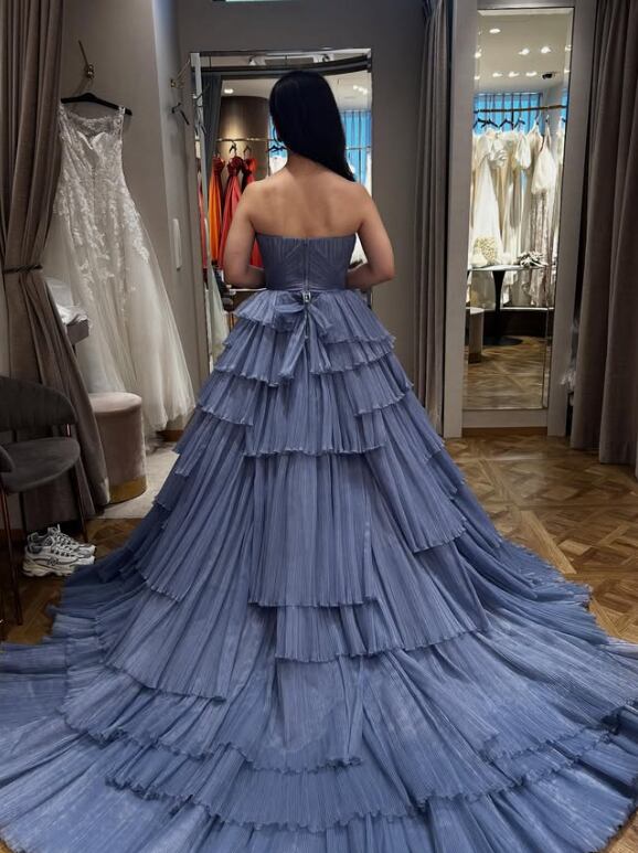 カラードレス 爽やかで優しいブルー ファスナー アシンメトリードレス ビスチェドレス ロングトレーン 花嫁