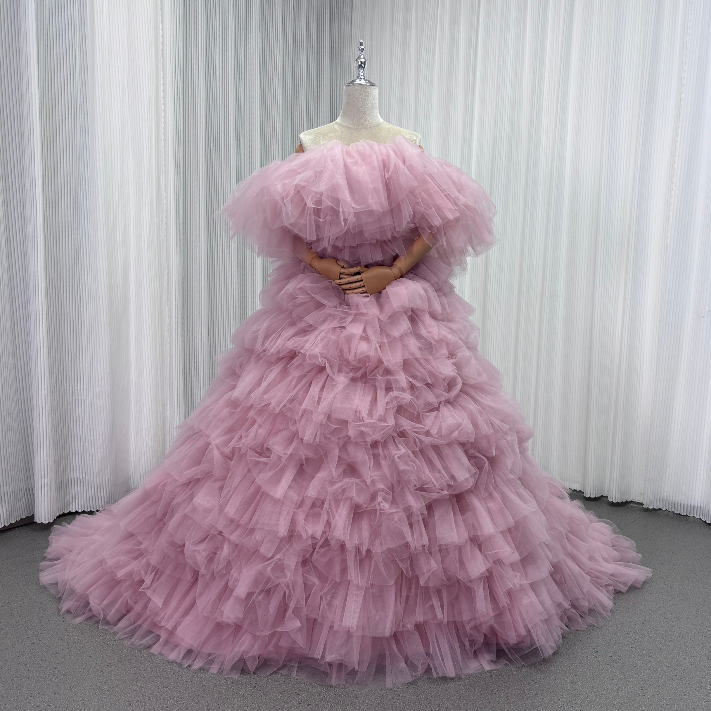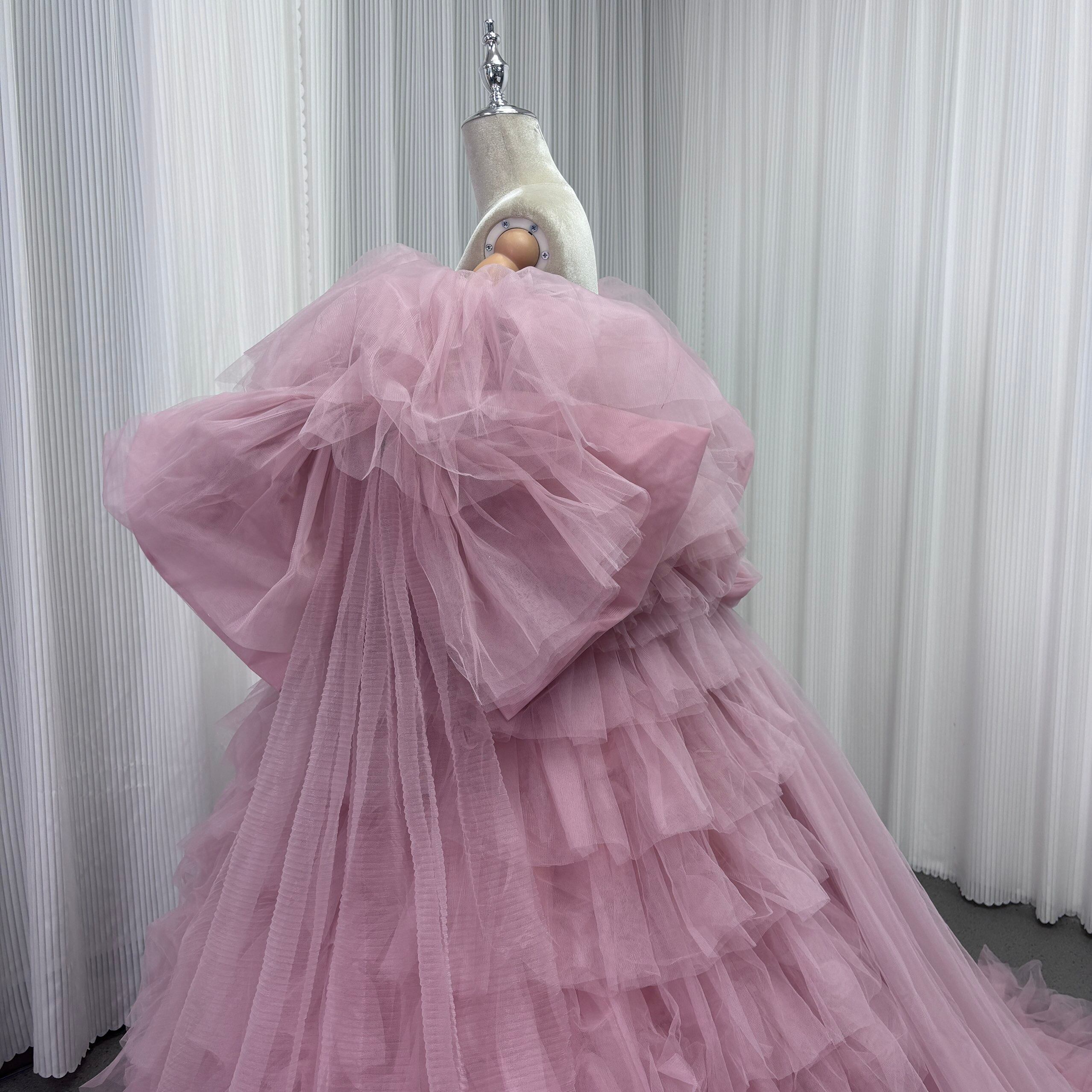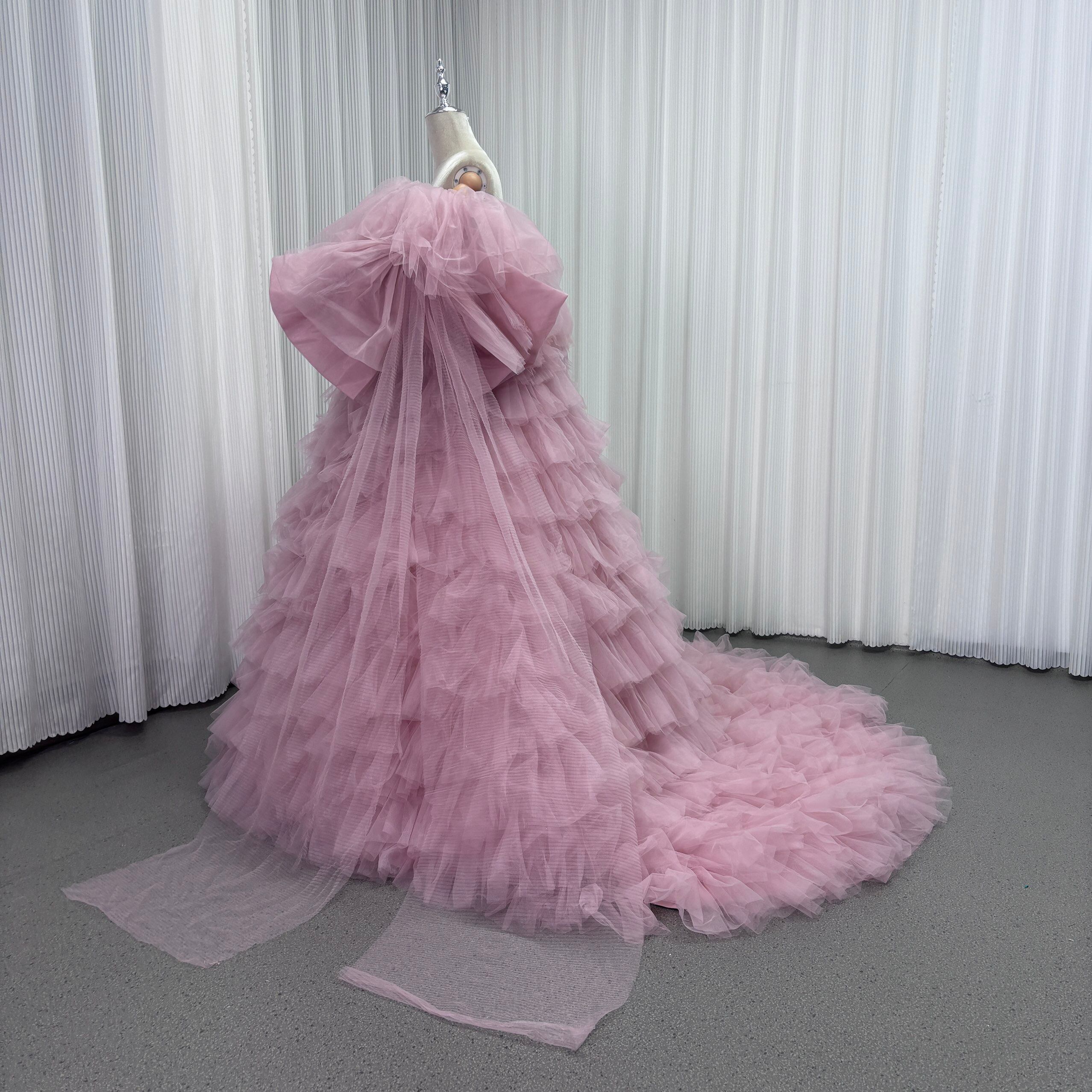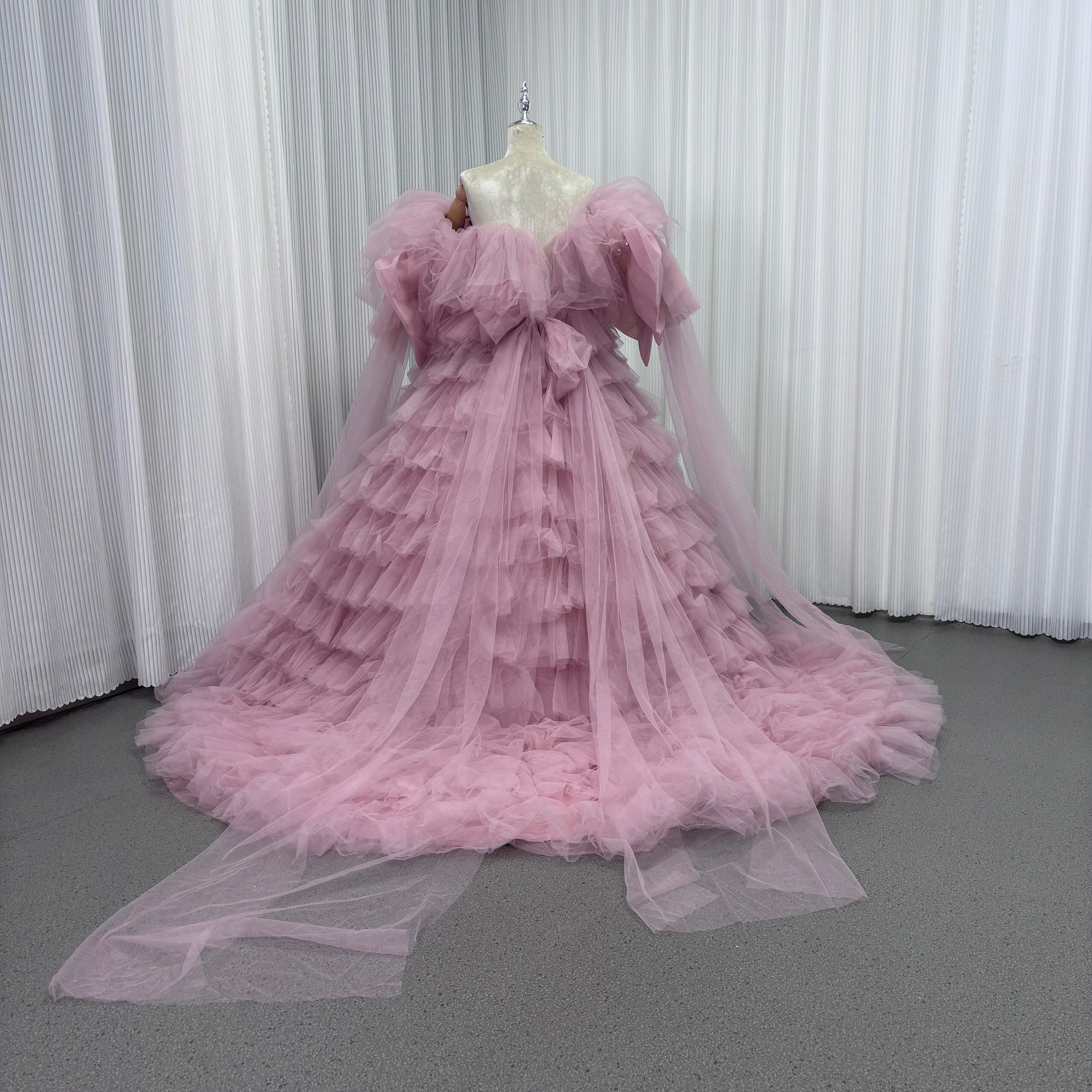 カラードレス ピンク オフショルダー 取り外し可能な付け袖 リボン チュールドレス ファスナー 結婚式 前撮り