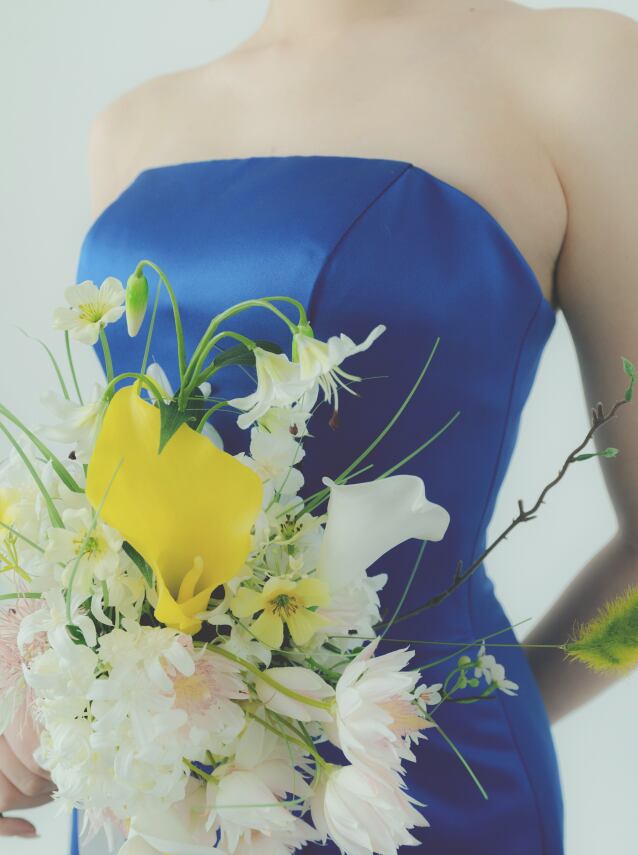 カラードレス ジュエルネイビー ソフトマーメイドライン 編み上げ ビスチェドレス 花嫁 前撮り