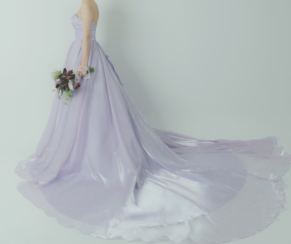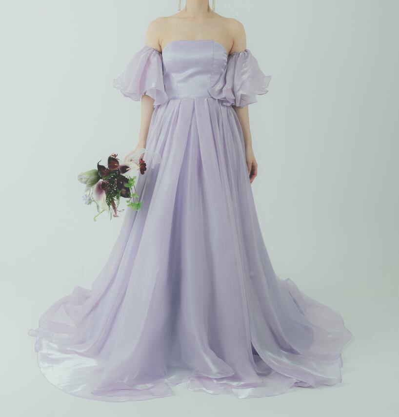 カラードレス パープル 取り外し可能な付け袖 シフォンオーガンジー 華やかなトレーン 花嫁 前撮り