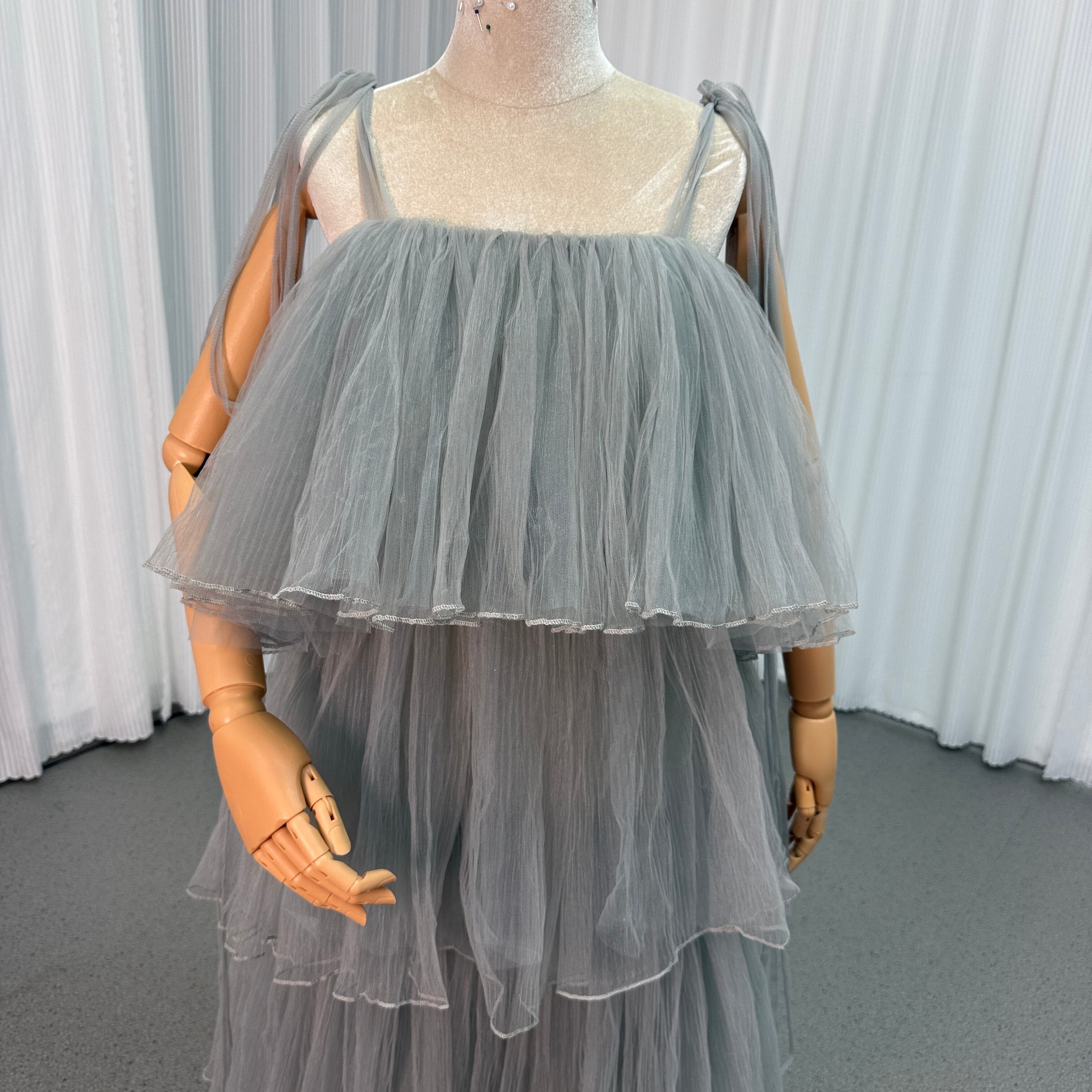 カラードレス グレー キャミソール ソフトチュール ロング チュールドレス 花嫁 前撮り