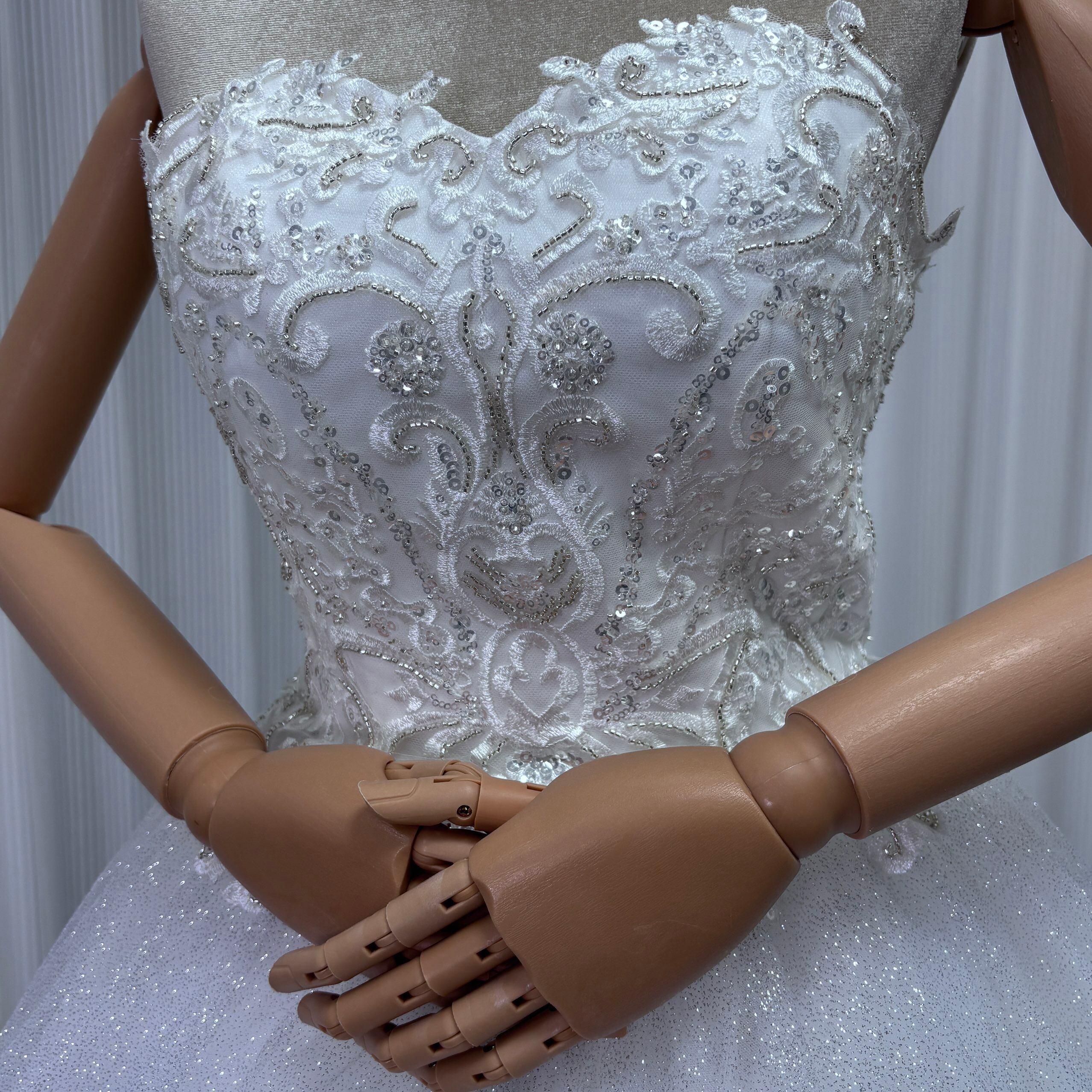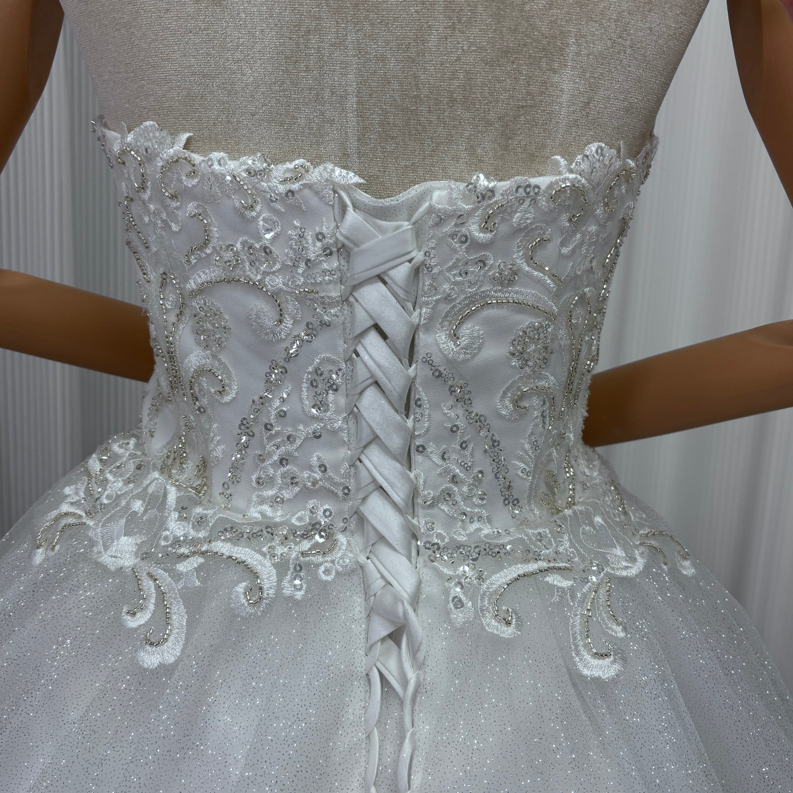 ウエディングドレス オフホワイト 繊細なレース シークインチュール ビスチェドレス ブライダル
