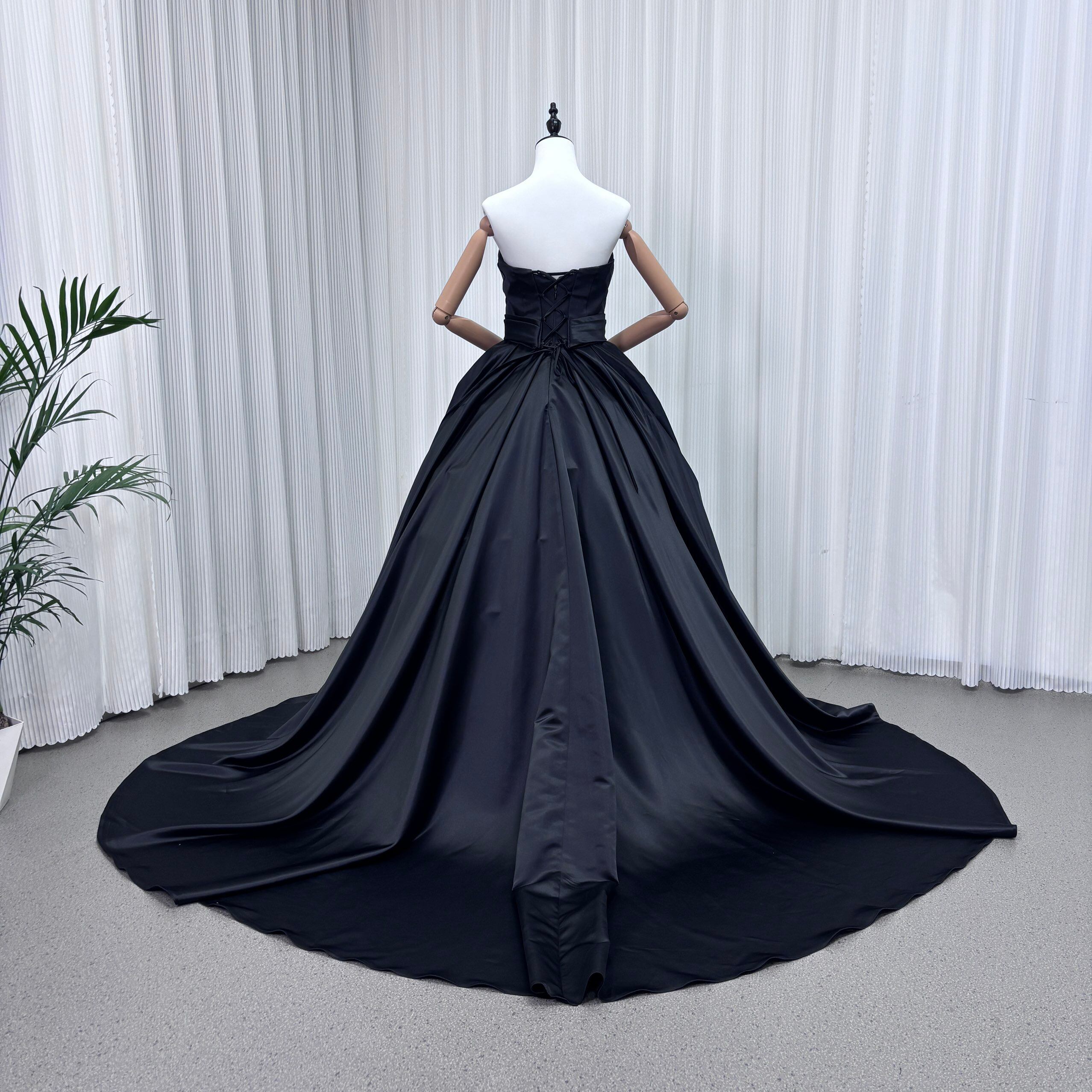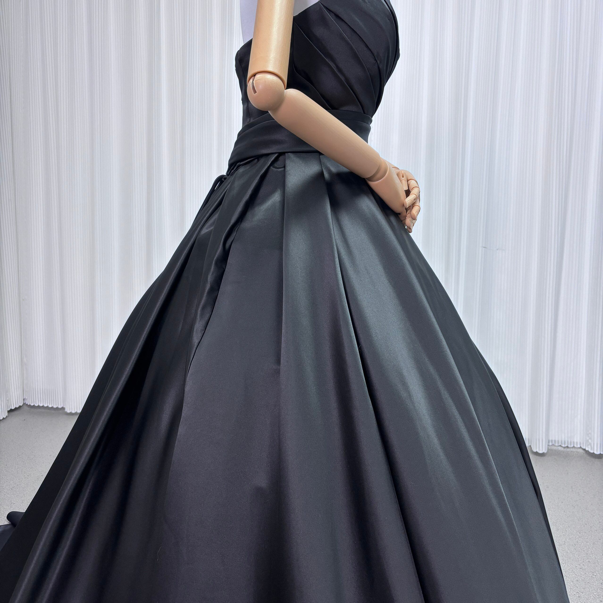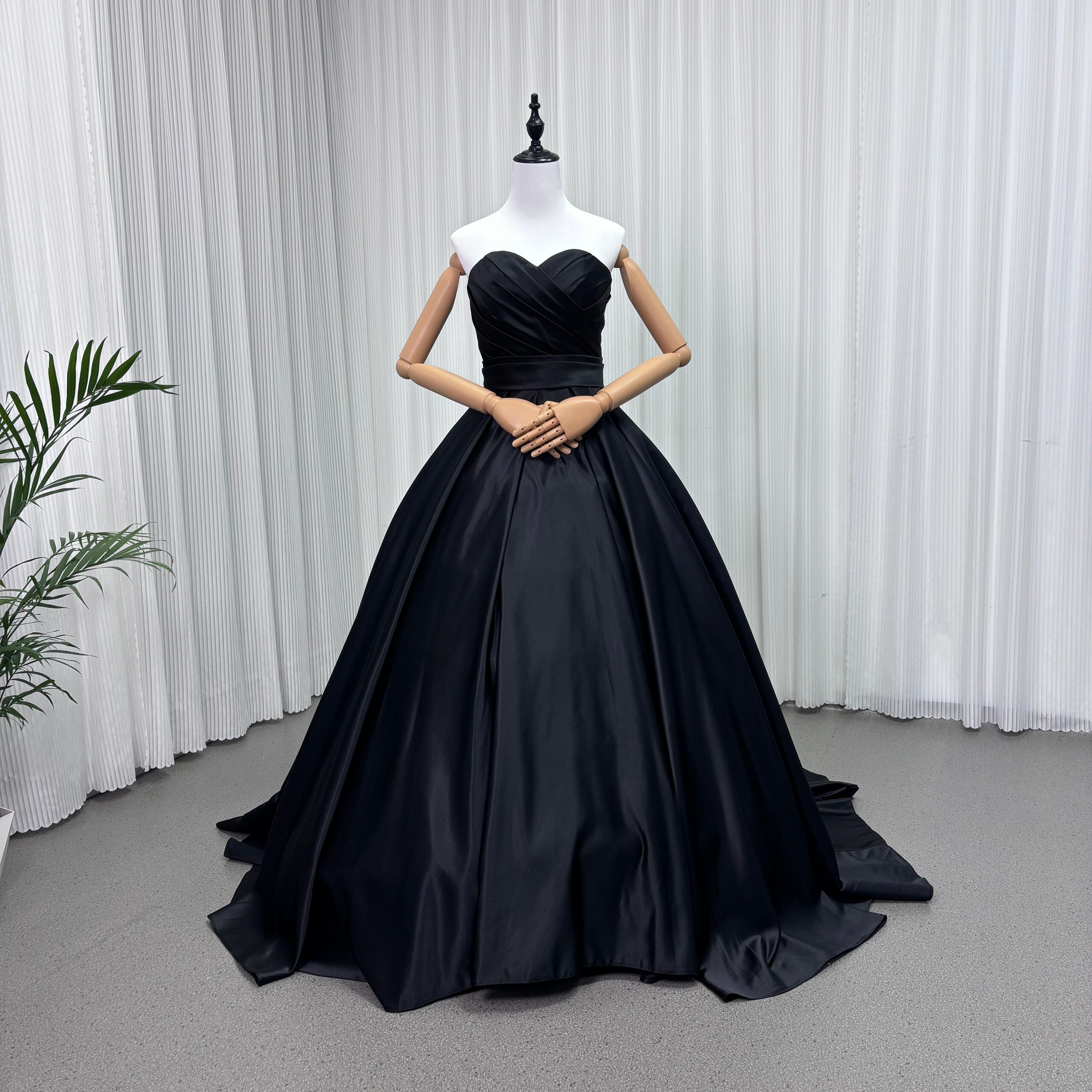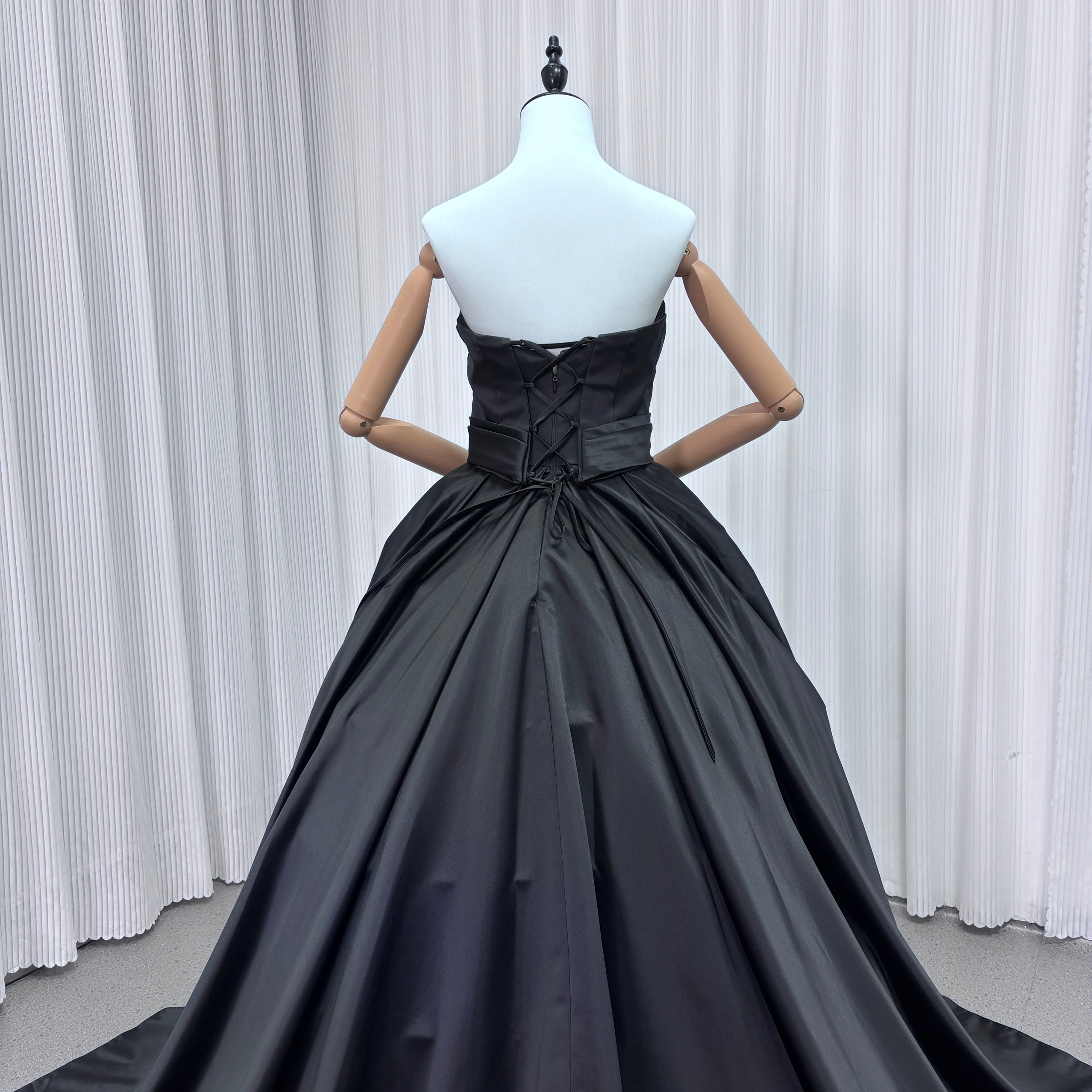 カラードレス ブラック スリット ビスチェドレス 光沢サテン 編み上げ+ファスナー 花嫁 前撮り 音楽会