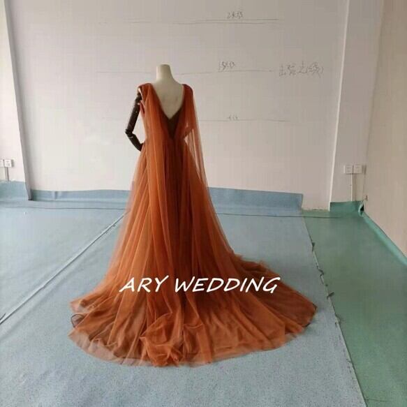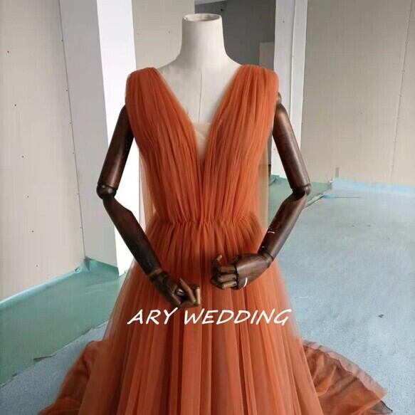 カラードレス テラコッタ色 Vネックドレス ソフトチュール 憧れのドレス ウエディングドレス