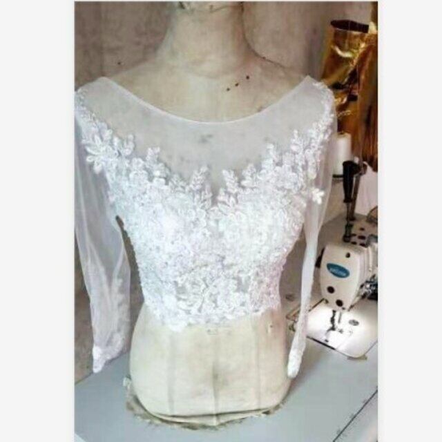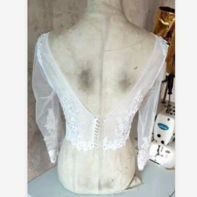 エレガント ホワイト ボレロ トップス 長袖 魅惑の花レース 上品なくるみボタン ウエディングドレス