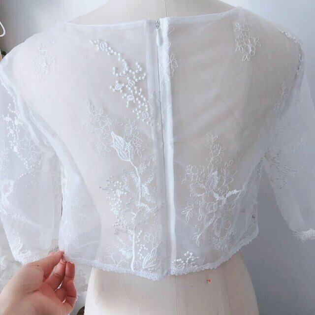 ウエディングドレス用ボレロ トップスのみ 七分袖 アイボリー 繊細レース オーダー可能