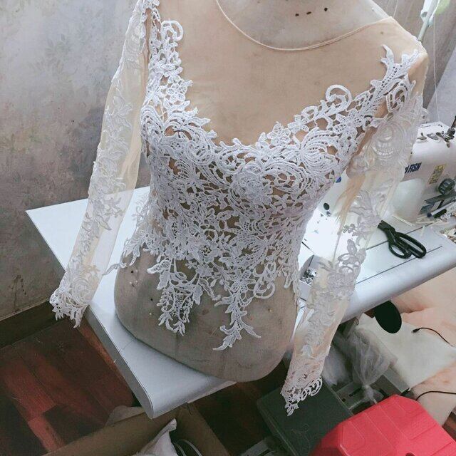 ウエディングドレス用ボレロ トップスのみ 長袖 3D立体レース刺繍 くるみボタン