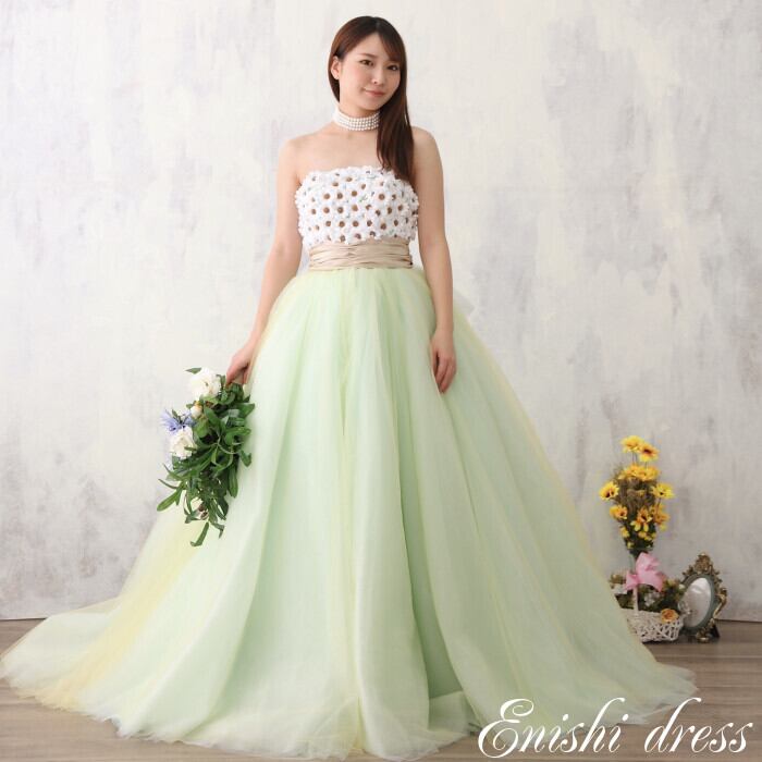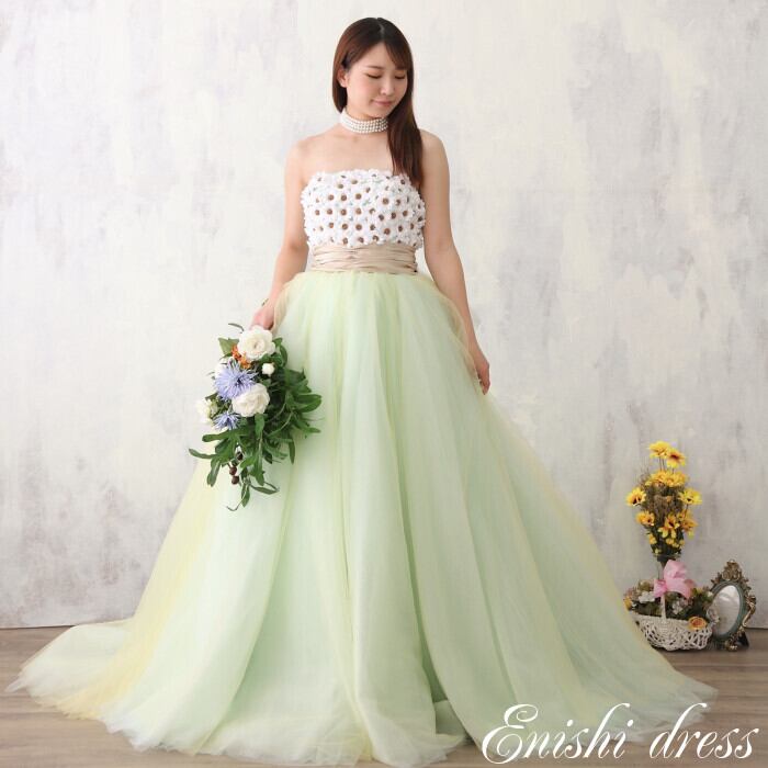 ウェディングドレス ミントグリーン カラードレス 造花 プリンセスライン 二次会 花嫁 ドレス 前撮り 後撮り