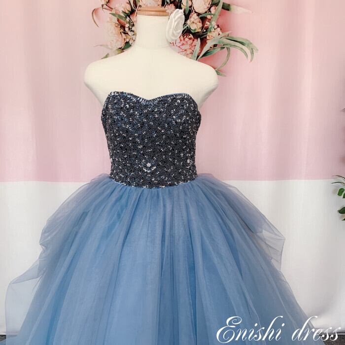 ウェディングドレス カラー ドレス ブルーグレー ハンドメイドビーズ 二次会 花嫁 ドレス 前撮り 後撮り撮り 後撮り