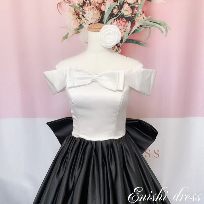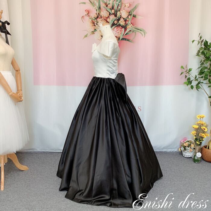 ウェディングドレス カラードレス サテンドレス オフショルダー リボン 二次会 花嫁 ドレス 前撮り 後撮り