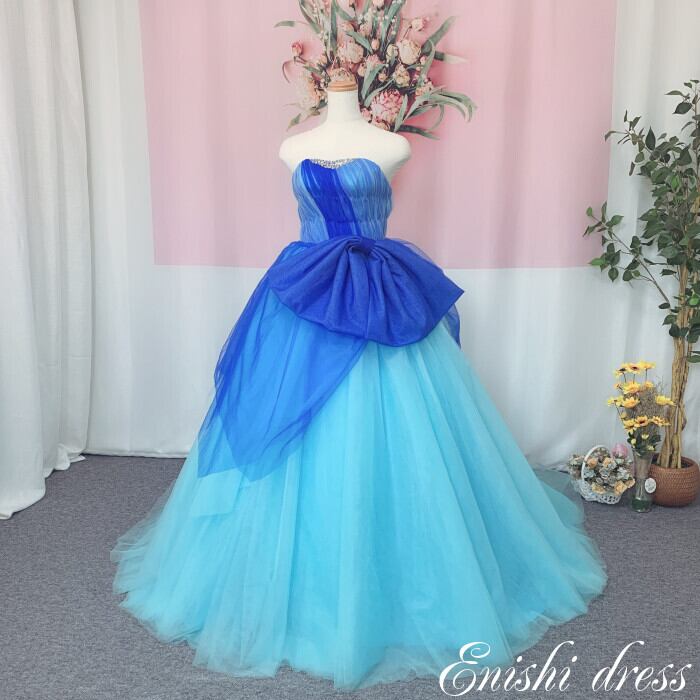 ウェディングドレス カラードレス グラデーション ブルー リボン ビーズ 色変更可 二次会 花嫁