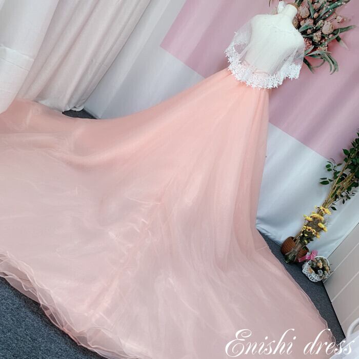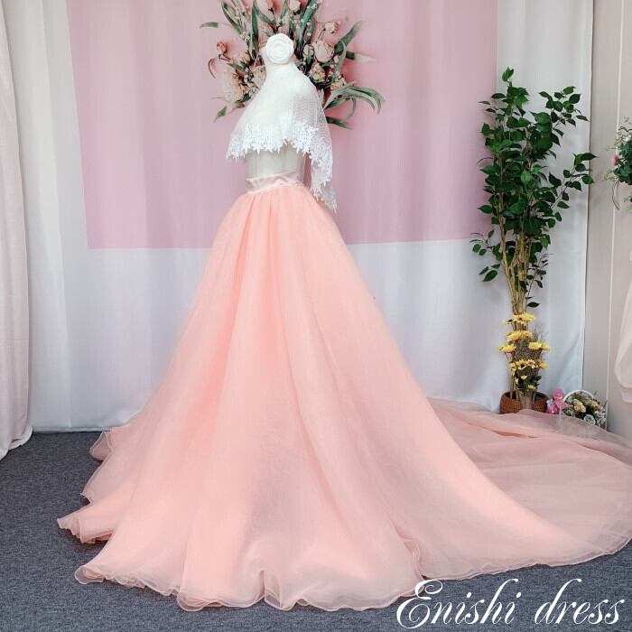ウェディングドレス オーガンジー オーバースカート ピンク 二次会 花嫁 ドレス 前撮り 後撮り