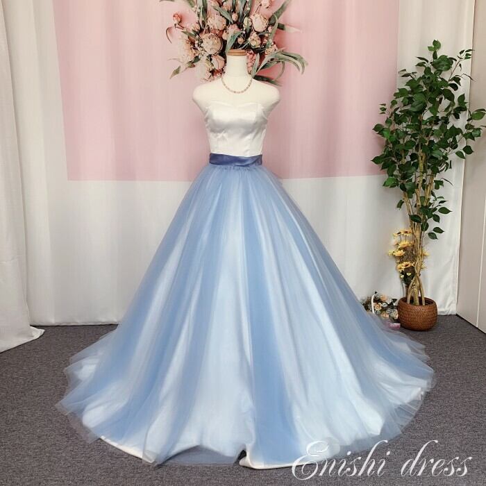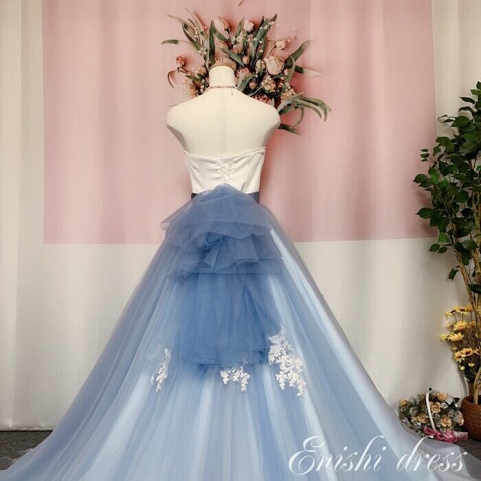 オーバースカート ブルーグレー リボン レース ウェディングドレスの色直し ホワイト アクセサリー 色変更無料