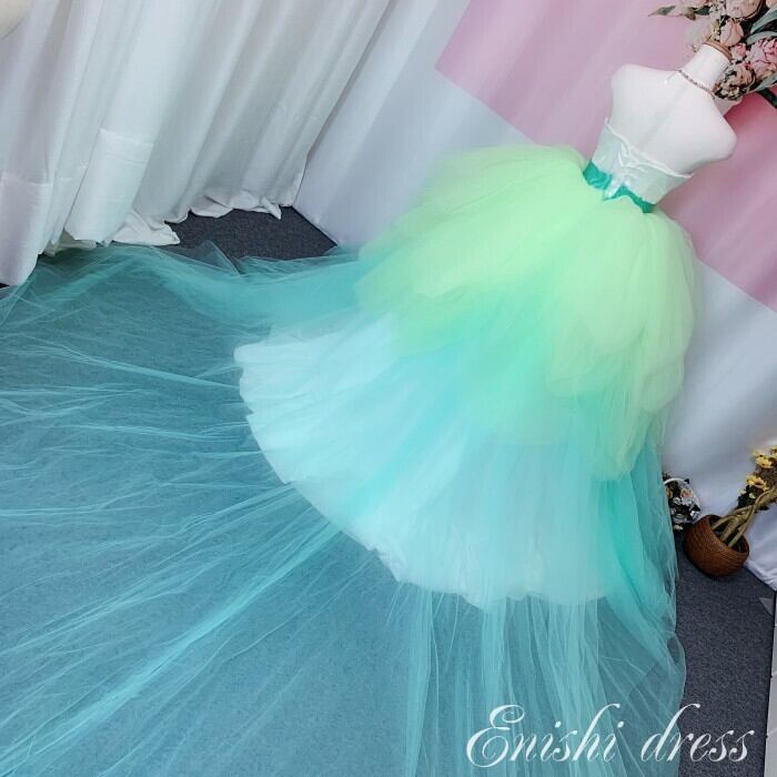 ウェディングドレス オーバースカート グリーン 花びらデザイン 2色使用 ウェディングドレスの色直し