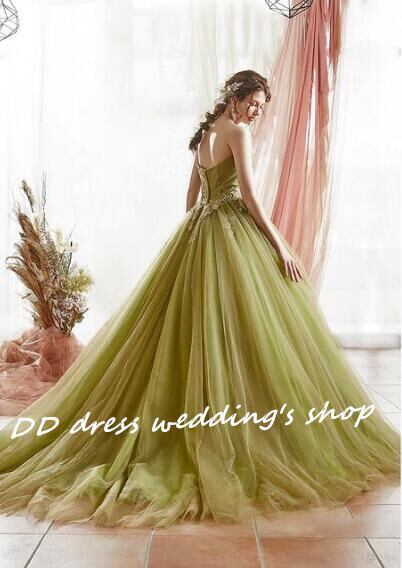 二次会 披露宴 カラードレス 薄グリーン ベアトップ 可愛い プリンセスライン