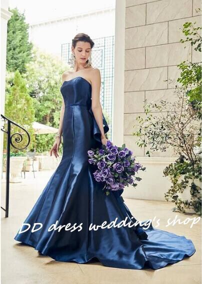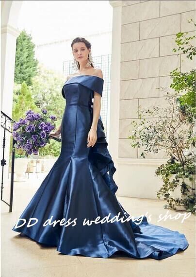 二次会 披露宴 パーティードレス ネイビー オフショル クラシカル マーメイドライン