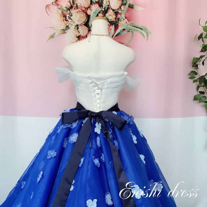 オーバースカート 花びら 造花 オーガンジー リボン ウェディングドレスの色直し ブルー 青い アクセサリー 色変更無料